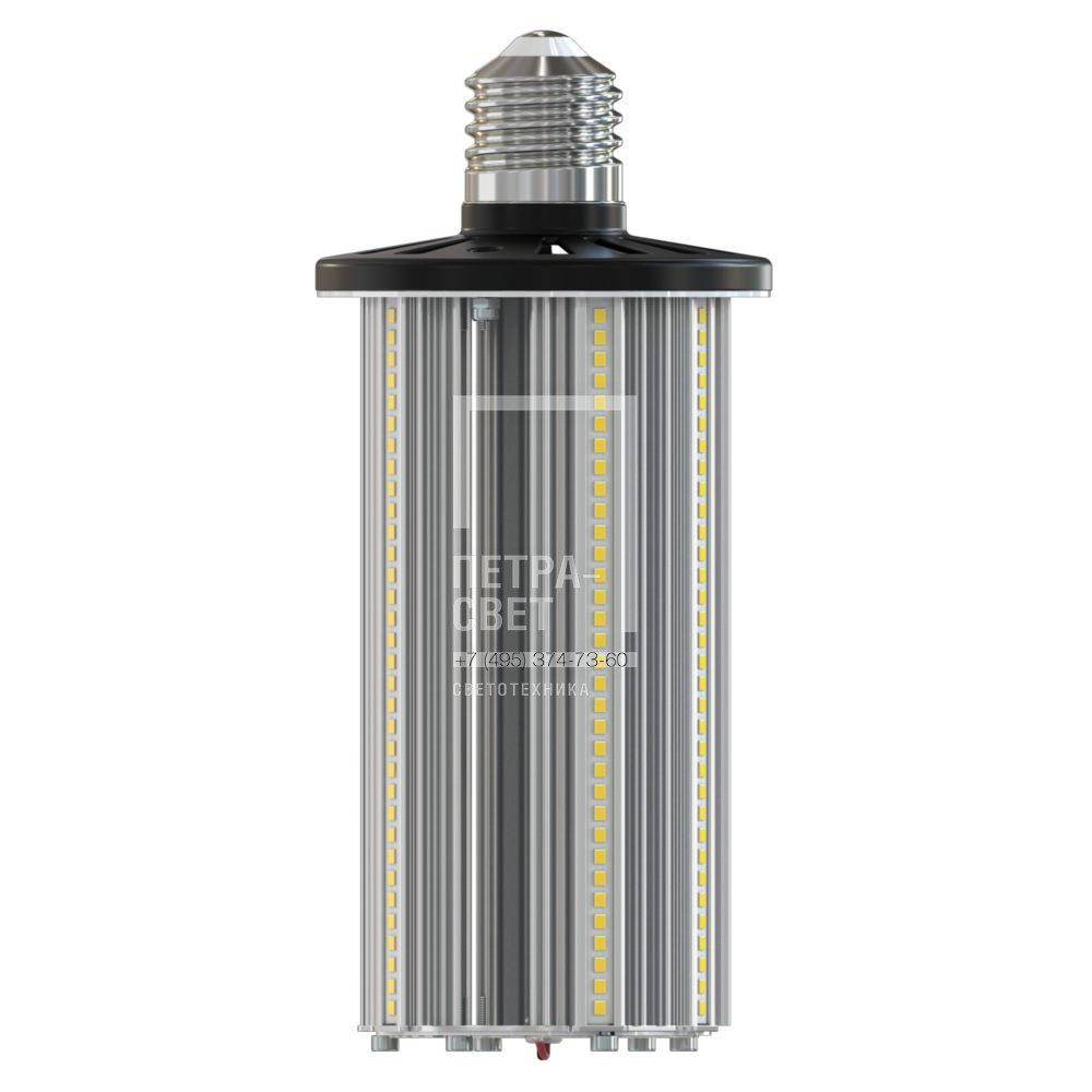 Серия светодиодных цокольных ламп для освещения: · промышленных и подсобных помещений, · придомовых и парковых территорий. Серия призвана заменить устаревшие ДНаТ-лампы.Конструкция корпуса обеспечивает эффективный теплоотвод от светодиодов, обеспечивая надёжность и долгий срок службы ламп. Лампы КС Е40-М отличаются равномерным освещением по всем направлениям, а также выгодной ценой за люмен и лёгкостью в монтаже. [Светодиодный модуль] В лампах мощностью до 60 Вт используются светодиодные планки с SMD-диодами. [Корпус] Экструдированный корпус из анодированного алюминия с большой площадью отдачи тепла (за счёт рёбер и волнообразных изгибов). [Источник питания] В лампах мощностью 30-60 Вт установлены защищённые от микросекундных импульсов высокой энергии источники питания в пластиковом корпусе. Они располагаются внутри основного корпуса, между рёбрами. В лампах мощностью от 80 Вт бескорпусный источник питания, также защищённый от микросекундных импульсов высокой энергии, устанавливается в специальный алюминиевый отсек, который располагается между цоколем и основным корпусом. Отсек полностью заливается теплопроводящим компаундом для отвода тепла от источников питания и диодов. [Крепление] Лампы устанавливаются с помощью стандартного цоколя Е40.