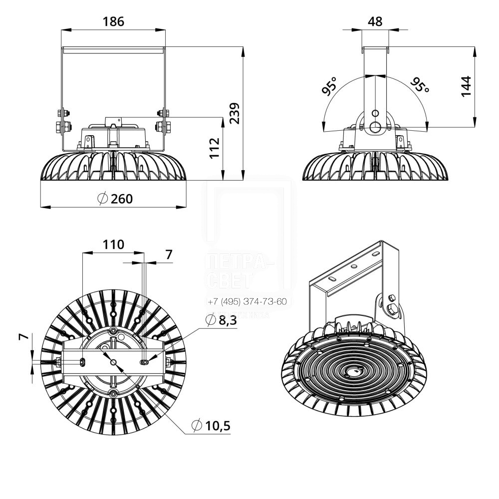 Габаритные размеры, не более, [мм] Ø260×239