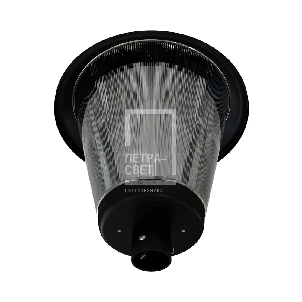 Серия декоративных светодиодных светильников для освещения: • парковых территорий и скверов, • набережных, • пешеходных улиц, • общественных пространств. [Корпус] Металлический корпус светильника окрашен порошковой краской, которая защищает его от атмосферных воздействий. На случай проникновения в корпус жидкости предусмотрены дренажные отверстия, которые не позволяют влаге скапливаться внутри корпуса светильника. [Светодиодный модуль] В светильнике установлены светодиодные планки на алюминиевой подложке – от 8 до 12 штук в зависимости от мощности светильника. [Рассеиватель] Рассеиватель изготовлен из прозрачного поликарбоната с рифленой фактурой. Материал рассеивателя не подвержен негативному воздействию УФ-излучения. [Источник питания] Источник питания в металлическом корпусе залит теплопроводящим компаундом, что снижает нагрев электронных компонентов источника и увеличивает срок его службы. Степень защиты источника питания от влаги и пыли IP67. [Крепление] Светильник крепится на вертикальную опору. Стандартный диаметр посадочного отверстия на светильнике – 62 мм (возможен другой диаметр – по согласованию). В комплекте идут крепежные болты.
