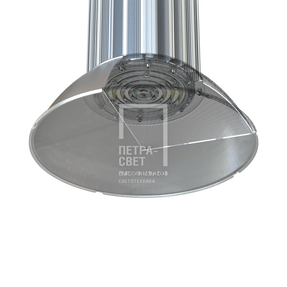 Отражатель изготовлен из алюминия, к светильнику крепится винтами. Рассеиватель изготовлен из прозрачного поликарбоната, устанавливается на отражатель с помощью зажимных элементов.