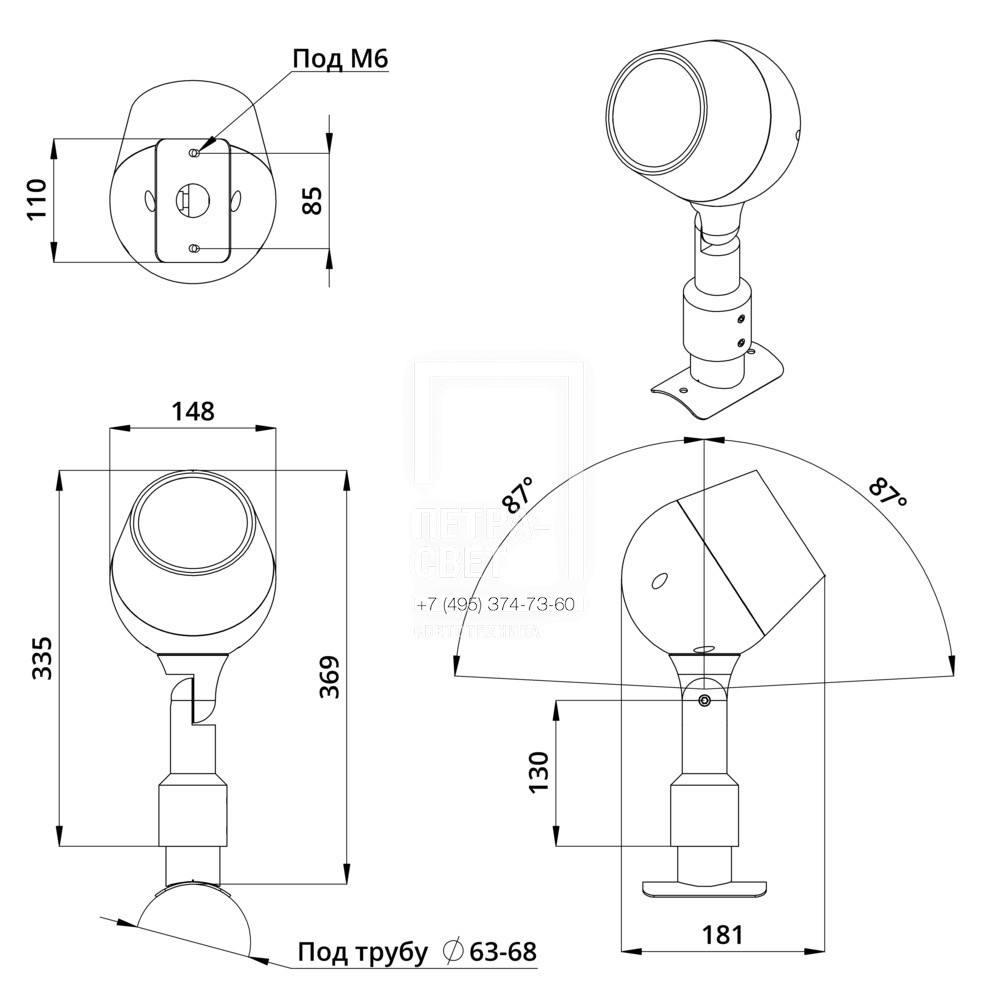 Аксессуар. Шелл. Кронштейн на опору диаметром 63-68