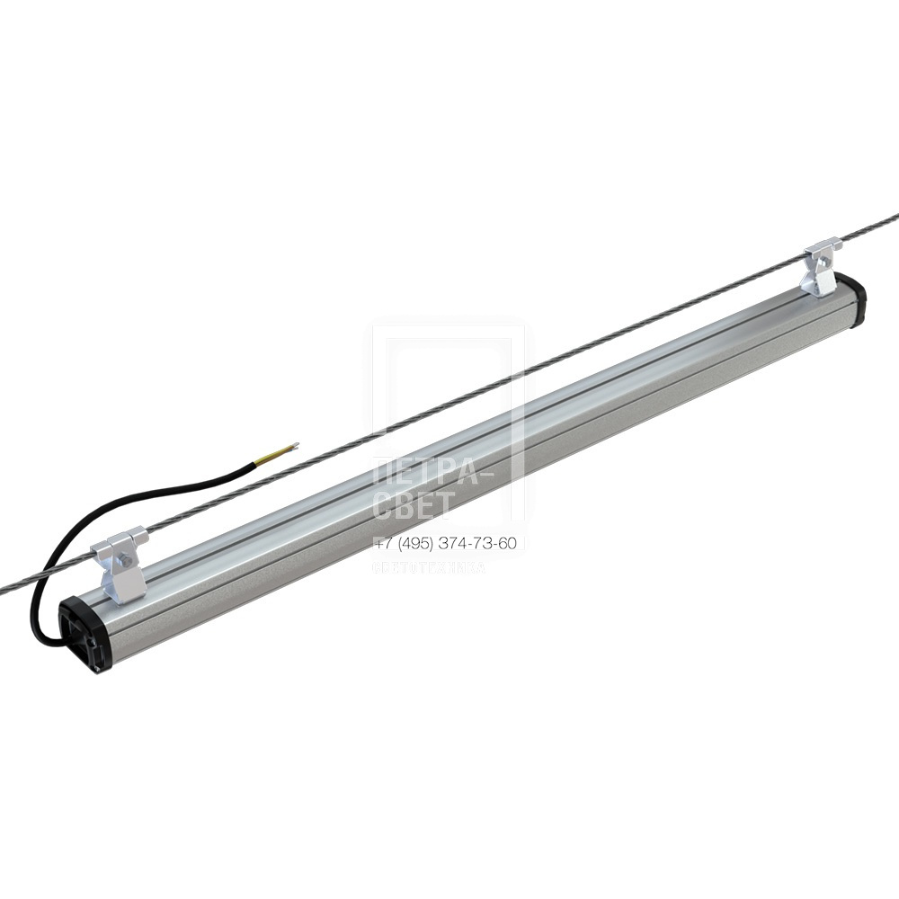 Крепление собственной разработки и производства позволяет подвесить и закрепить светильник на горизонтальный трос.