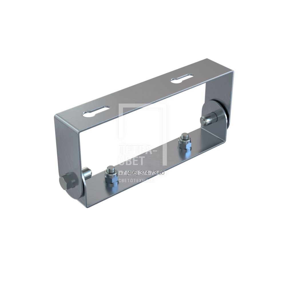 Кронштейн собственного производства предназначен для монтажа светильника на поверхность (потолок, стену и т.д.). Конструкция кронштейна позволяет регулировать угол наклона светильника. Кронштейн изготовлен из нержавеющей стали. Опционально возможна окраска. Крепление поставляется уже установленным на светильник.