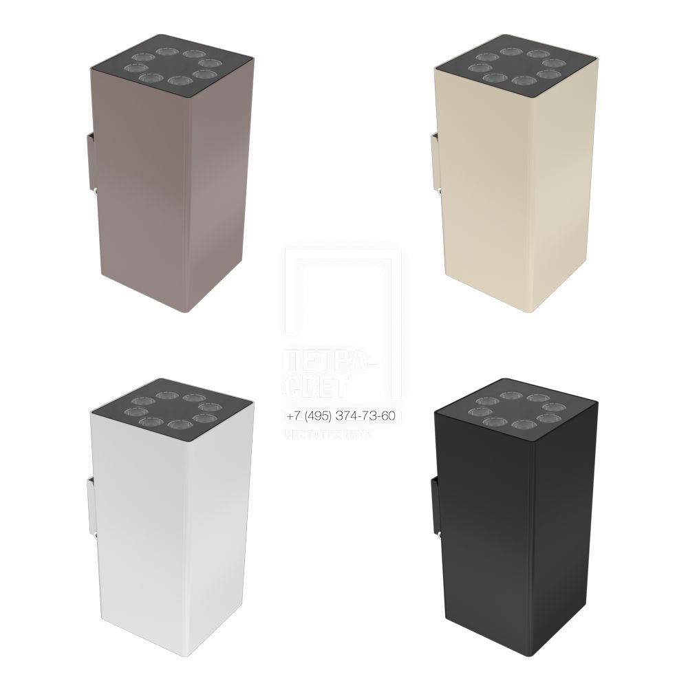 Серия архитектурных прожекторов для: • акцентной подсветки элементов зданий, • создания вертикальных световых столбов на фасадах, • маломощной подсветки отдельных объектов, например, скульптур. Лаконичный внешний вид и возможность порошковой окраски по каталогу RAL (опционально) позволят легко вписать светильник в архитектурную среду. Особенности серии: • в наличии как однонаправленные, так и двунаправленные светильники; • компактные габаритные размеры и вес, благодаря которым прожектор можно размещать не только на фасадах зданий, но и на декоративных элементах (колонны, козырьки и т.д.) и в межоконных пространствах; • разнообразие оптик для решения любых светотехнических задач: 5°, 10°, 10x65°, 15°, 25°, 50° и 90°; • высокая герметичность светильника; • рассеиватель из ударопрочного закаленного стекла. [Корпус] Экструдированный корпус из анодированного алюминия в квадратном форм-факторе. Покрытие — порошковая краска, защищающая корпус от агрессивного внешнего воздействия. На корпусе отсутствуют выступающие части, благодаря чему на нем не скапливаются лишние загрязнения. Корпус надежно герметизирован и имеет степень пыле- и влагозащиты IP67. [Светодиодный модуль] Алюминиевая светодиодная плата изготовлена по технологии SMT. В светильнике используются диоды 3535 на керамической основе с дискретной оптикой. [Источник питания] Источник питания в металлическом корпусе (IP67), залитом теплопроводящим компаундом, расположен внутри корпуса светильника. [Закаленное стекло] Для герметизации корпуса и защиты оптической части предусмотрено закаленное стекло толщиной 4 мм. Стекло монтируется на одном уровне с корпусом, что исключает скопление воды на его поверхности. Также светильник имеет защитную маску, которая устраняет возможный «паразитный» свет. [Крепление] Прожектор крепится на поверхность с помощью стального поворотного кронштейна с возможностью регулировки угла наклона на ±5°. Кронштейн может быть окрашен в цвет светильника.