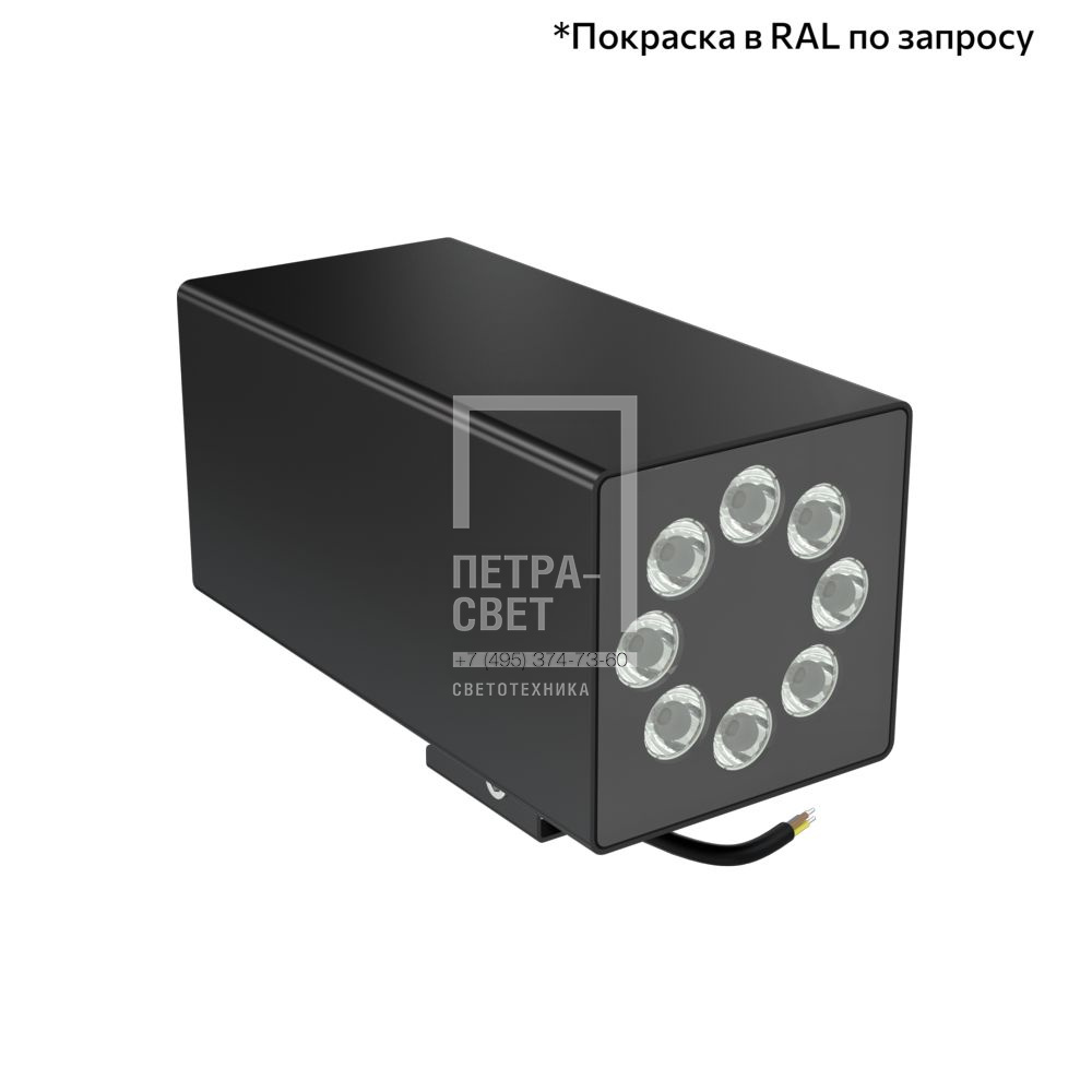 Серия архитектурных прожекторов для: • акцентной подсветки элементов зданий, • создания вертикальных световых столбов на фасадах, • маломощной подсветки отдельных объектов, например, скульптур. Лаконичный внешний вид и возможность порошковой окраски по каталогу RAL (опционально) позволят легко вписать светильник в архитектурную среду. Особенности серии: • в наличии как однонаправленные, так и двунаправленные светильники; • компактные габаритные размеры и вес, благодаря которым прожектор можно размещать не только на фасадах зданий, но и на декоративных элементах (колонны, козырьки и т.д.) и в межоконных пространствах; • разнообразие оптик для решения любых светотехнических задач: 5°, 10°, 10x65°, 15°, 25°, 50° и 90°; • высокая герметичность светильника; • рассеиватель из ударопрочного закаленного стекла. [Корпус] Экструдированный корпус из анодированного алюминия в квадратном форм-факторе. Покрытие — порошковая краска, защищающая корпус от агрессивного внешнего воздействия. На корпусе отсутствуют выступающие части, благодаря чему на нем не скапливаются лишние загрязнения. Корпус надежно герметизирован и имеет степень пыле- и влагозащиты IP67. [Светодиодный модуль] Алюминиевая светодиодная плата изготовлена по технологии SMT. В светильнике используются диоды 3535 на керамической основе с дискретной оптикой. [Источник питания] Источник питания в металлическом корпусе (IP67), залитом теплопроводящим компаундом, расположен внутри корпуса светильника. [Закаленное стекло] Для герметизации корпуса и защиты оптической части предусмотрено закаленное стекло толщиной 4 мм. Стекло монтируется на одном уровне с корпусом, что исключает скопление воды на его поверхности. Также светильник имеет защитную маску, которая устраняет возможный «паразитный» свет. [Крепление] Прожектор крепится на поверхность с помощью стального поворотного кронштейна с возможностью регулировки угла наклона на ±5°. Кронштейн может быть окрашен в цвет светильника.
