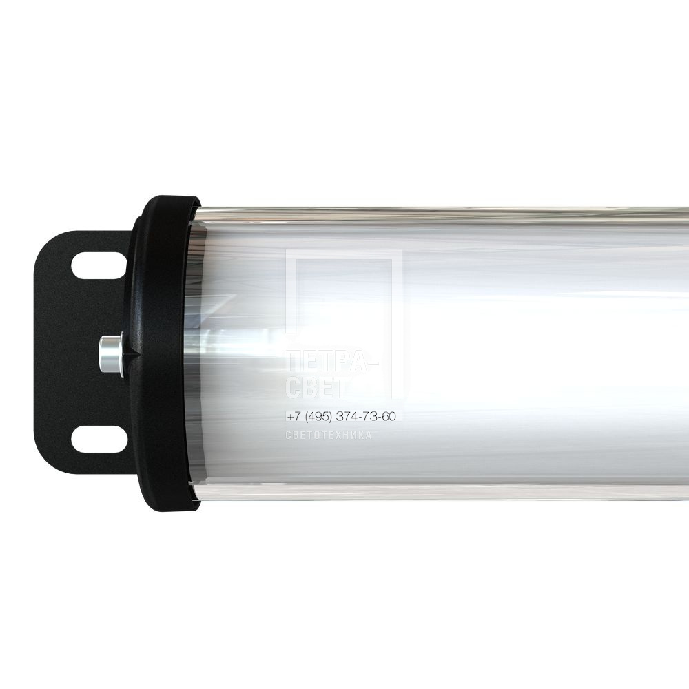 Серия специализированных светодиодных светильников для освещения: · промышленных предприятий, · мастерских и ремонтных площадок, · животноводческих ферм, · тоннелей метрополитена и т.д. Повышенная герметичность корпуса (IP68) позволяет использовать светильники в условиях сильной загрязненности/запыленности и очищать их с помощью водяных струй под давлением. Помимо этого, стеклянный корпус не подвержен появлению царапин даже при многократном очищении, например, с помощью ветоши. Световая отдача достигает 157 лм/Вт. [Корпус] Светильник «Лайтбар» представляет собой трубку из боросиликатного стекла (толщина 4 мм) с торцевыми крышками из литого алюминия. Крышки покрываются порошковой краской (базовый цвет – черный, опционально – любое покрытие из каталога RAL) и герметизируются литыми силиконовыми прокладками. [Светодиодный модуль] Алюминиевая светодиодная плата изготовлена по технологии SMT. [Источник питания] Эффективные источники питания располагаются внутри корпуса светильника. [Рассеиватель] Внутри корпуса светильника установлен полукруглый опаловый рассеиватель из УФ-стабилизированного поликарбоната, благодаря которому создается мягкое освещение с широким углом рассеивания. [Крепление] Крепежный кронштейн изготовлен из оцинкованной стали и покрыт порошковой краской. Кронштейн позволяет регулировать угол наклона светильника.