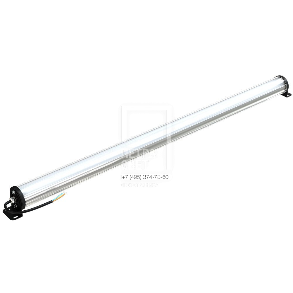 Серия специализированных светодиодных светильников для освещения: · промышленных предприятий, · мастерских и ремонтных площадок, · животноводческих ферм, · тоннелей метрополитена и т.д. Повышенная герметичность корпуса (IP68) позволяет использовать светильники в условиях сильной загрязненности/запыленности и очищать их с помощью водяных струй под давлением. Помимо этого, стеклянный корпус не подвержен появлению царапин даже при многократном очищении, например, с помощью ветоши. Световая отдача достигает 157 лм/Вт. [Корпус] Светильник «Лайтбар» представляет собой трубку из боросиликатного стекла (толщина 4 мм) с торцевыми крышками из литого алюминия. Крышки покрываются порошковой краской (базовый цвет – черный, опционально – любое покрытие из каталога RAL) и герметизируются литыми силиконовыми прокладками. [Светодиодный модуль] Алюминиевая светодиодная плата изготовлена по технологии SMT. [Источник питания] Эффективные источники питания располагаются внутри корпуса светильника. [Рассеиватель] Внутри корпуса светильника установлен полукруглый опаловый рассеиватель из УФ-стабилизированного поликарбоната, благодаря которому создается мягкое освещение с широким углом рассеивания. [Крепление] Крепежный кронштейн изготовлен из оцинкованной стали и покрыт порошковой краской. Кронштейн позволяет регулировать угол наклона светильника.