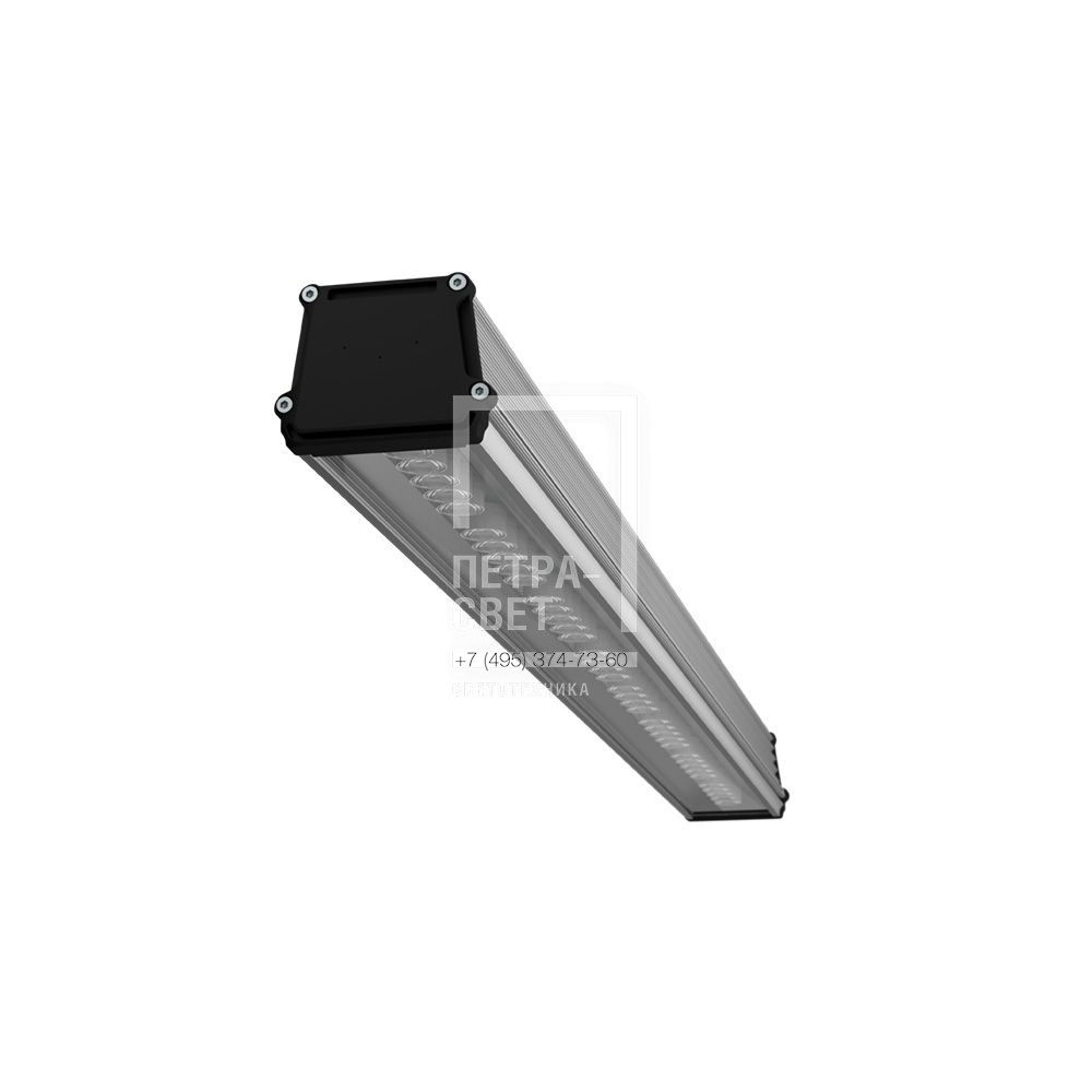 Серия линейных светодиодных светильников для освещения: • складских помещений, • цехов фасовки, • узких и высоких стеллажных систем, секций хранения и складирования продукции. Светильники серии «Т-Линия v2.0 Оптик Склад» рекомендуется устанавливать на высоте до 20 метров. Серия «Т-Линия v2.0 Оптик Склад» имеет энергоэффективность до 159 лм/Вт. Светильники создают направленное освещение с небольшой боковой засветкой благодаря индивидуальным линзам на отдельных светодиодах, поэтому с их помощью можно эффективно освещать стеллажные системы (в том числе их верхнюю часть). [Корпус] Экструдированный корпус изготовлен из анодированного алюминия и устойчив к коррозии. Большое количество рёбер обеспечивает эффективное теплоотведение от светодиодов. Кроме того, корпус хорошо защищён от влаги и пыли (IP67). [Светодиодный модуль] В светильниках «Т-Линия v2.0 Оптик Склад» используются светодиодные планки на специальной алюминиевой подложке. [Линзы] Для создания направленного (в том числе узконаправленного) освещения на светодиоды устанавливаются индивидуальные линзы из ПММА. Некоторое количество светодиодов остаётся открытым (без установки на них линз) – это обеспечивает КСС с небольшой боковой засветкой для освещения верхних частей стеллажных систем. [Рассеиватель] Рассеиватель изготовлен из ударопрочного поликарбоната. [Источник питания] Эффективные источники питания, защищённые от микросекундных импульсов высокой энергии. [Крепление] Варианты установки светильников: монтаж на винт-петли, подвес на горизонтальный трос, поворотный кронштейн.