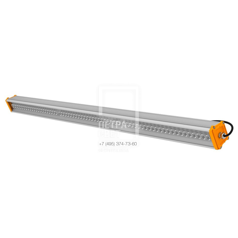 Серия линейных светодиодных светильников для освещения взрывоопасных зон класса 2. Светильник относится к электрооборудованию повышенной надежности против взрыва. [Маркировка взрывозащиты] 2 Ex nR IIC T6 Gc X/Ex tc IIIC T85C Dc X. [Структура наименования] Т-Линия v2.0 Ex - X1Y1 - 220 - X2 - X3 - X4Y2 - X5 - Y3. параметры X — обязательные, параметры Y — опциональные: X1 — номинальное значение электрической мощности; X2 — обозначение типоразмера светильника; X3 — тип крепления; X4 — исполнение оптической части; X5 — четырехзначный световой код (первые 2 цифры — КЦТ, вторые — CRI); X6 — комплектация блоком аварийного питания. Y1 — опция наличия коммутационной коробки и проходного подключения; Y2 — опция комплектации защитной решеткой; Y3 — опция интерфейса управления. U — Обозначение диапазона напряжения питания для низковольтных светильников. [Конструкция и материалы] Экструдированный корпус изготовлен из анодированного алюминия, устойчивого к коррозии, имеет торцевые металлические крышки с силиконовым уплотнителем. Большое количество ребер обеспечивает эффективный теплоотвод. Светодиодная плата изготовлена по технологии SMT с применением большого количества высокоэффективных светодиодов. Исполнение «Оптик» с прозрачным рассеивателем представлено с широким набором оптик (10°, 15°, 25°, 50°, 90°, 10х70°) за счет применения индивидуальных линз из ПММА, устанавливаемых на каждый светодиод. Эффективные источники питания защищены от микросекундных импульсов высокой энергии. [Особенности серии] • Световая отдача — до 143 лм/Вт. • Цветовые температуры — 3000, 4000, 5000 К. • Степень защиты от пыли и влаги — IP66. • Температура эксплуатации — от -40 до +50 °С. • Оптики — 10°, 15°, 25°, 50°, 90°, 10х70°. • Возможные крепления — на трос, на винт-петлю, на шпильку, на трубу (консоль), на кронштейн, на защелки J-Hook. [Опции и аксессуары] При необходимости светильник может быть оснащен взрывозащищенной распределительной коробкой для организации электрического подключения. Опционально взрывозащищенная коробка может быть оснащена одним или несколькими гермовводами (в зависимости от длины кабеля). Для дополнительной защиты рассеивателя светильника от механических повреждений предусмотрена защитная решетка из стали. Аксессуар заказывается отдельно.