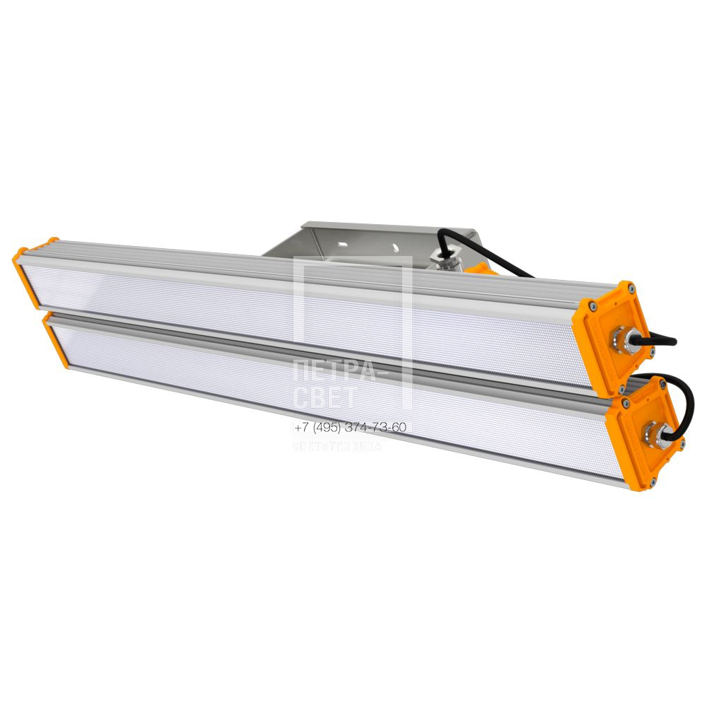 Серия линейных светодиодных светильников для освещения взрывоопасных зон класса 2. Светильник относится к электрооборудованию повышенной надежности против взрыва. «Т-Линия v2.0 Ex» имеет широкий набор исполнений: стандартное, низковольтное, с блоком аварийного питания, с возможностью управления при помощи интерфейса 0-10В или по протоколу Dali. За счет применения многомодульной конструкции светильник «Т-Линия v2.0 Ex» представлен в широком диапазоне мощностей – от 10 до 600 Вт. При необходимости светильник может быть оснащен взрывозащищенной распределительной коробкой для организации электрического подключения. [Взрывозащита] Маркировка взрывозащиты: 2 Ex nR IIC T6 Gc X/Ex tc IIIC T85C Dc X. [Корпус] Экструдированный корпус изготовлен из анодированного алюминия, устойчивого к коррозии, имеет торцевые металлические крышки с силиконовым уплотнителем. Большое количество ребер обеспечивает эффективный теплоотвод. Светильник надежно защищён от влаги и пыли (IP66), имеет широкий диапазон температуры эксплуатации от -40 °С до +50 °С. [Светодиодный модуль] Светодиодная плата изготовлена по технологии SMT с применением большого количества высокоэффективных светодиодов. [Рассеиватели и линзы] Светильники «Т-Линия v2.0 Ex» оснащаются как стандартными рассеивателями из УФ-стабилизированного поликарбоната: прозрачного, опалового и микропризматического, так и прозрачным или матовым закаленным стеклом. Светильники с прозрачным рассеивателем также представлены с широким набором оптик (10°, 15°, 25°, 50°, 90°, 10х70°, 30х50°) за счет применения индивидуальных линз из ПММА, устанавливаемых на каждый светодиод. [Источник питания] Эффективные источники питания защищены от микросекундных импульсов высокой энергии. [Крепление] Возможны различные варианты монтажа: подвесной на трос, на винт-петлю, на шпильку, на трубу (консоль), на кронштейн, на защелки J-Hook.