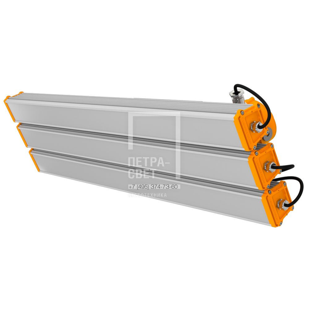 Серия линейных светодиодных светильников для освещения взрывоопасных зон класса 2. Светильник относится к электрооборудованию повышенной надежности против взрыва. «Т-Линия v2.0 Ex» имеет широкий набор исполнений: стандартное, низковольтное, с блоком аварийного питания, с возможностью управления при помощи интерфейса 0-10В или по протоколу Dali. За счет применения многомодульной конструкции светильник «Т-Линия v2.0 Ex» представлен в широком диапазоне мощностей – от 10 до 600 Вт. При необходимости светильник может быть оснащен взрывозащищенной распределительной коробкой для организации электрического подключения. [Взрывозащита] Маркировка взрывозащиты: 2 Ex nR IIC T6 Gc X/Ex tc IIIC T85C Dc X. [Корпус] Экструдированный корпус изготовлен из анодированного алюминия, устойчивого к коррозии, имеет торцевые металлические крышки с силиконовым уплотнителем. Большое количество ребер обеспечивает эффективный теплоотвод. Светильник надежно защищён от влаги и пыли (IP66), имеет широкий диапазон температуры эксплуатации от -40 °С до +50 °С. [Светодиодный модуль] Светодиодная плата изготовлена по технологии SMT с применением большого количества высокоэффективных светодиодов. [Рассеиватели и линзы] Светильники «Т-Линия v2.0 Ex» оснащаются как стандартными рассеивателями из УФ-стабилизированного поликарбоната: прозрачного, опалового и микропризматического, так и прозрачным или матовым закаленным стеклом. Светильники с прозрачным рассеивателем также представлены с широким набором оптик (10°, 15°, 25°, 50°, 90°, 10х70°, 30х50°) за счет применения индивидуальных линз из ПММА, устанавливаемых на каждый светодиод. [Источник питания] Эффективные источники питания защищены от микросекундных импульсов высокой энергии. [Крепление] Возможны различные варианты монтажа: подвесной на трос, на винт-петлю, на шпильку, на трубу (консоль), на кронштейн, на защелки J-Hook.