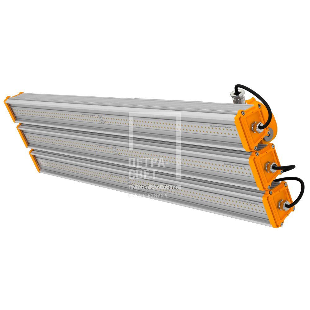 Серия линейных светодиодных светильников для освещения взрывоопасных зон класса 2. Светильник относится к электрооборудованию повышенной надежности против взрыва. «Т-Линия v2.0 Ex» имеет широкий набор исполнений: стандартное, низковольтное, с блоком аварийного питания, с возможностью управления при помощи интерфейса 0-10В или по протоколу Dali. За счет применения многомодульной конструкции светильник «Т-Линия v2.0 Ex» представлен в широком диапазоне мощностей – от 10 до 600 Вт. При необходимости светильник может быть оснащен взрывозащищенной распределительной коробкой для организации электрического подключения. [Взрывозащита] Маркировка взрывозащиты: 2 Ex nR IIC T6 Gc X/Ex tc IIIC T85C Dc X. [Корпус] Экструдированный корпус изготовлен из анодированного алюминия, устойчивого к коррозии, имеет торцевые металлические крышки с силиконовым уплотнителем. Большое количество ребер обеспечивает эффективный теплоотвод. Светильник надежно защищён от влаги и пыли (IP66), имеет широкий диапазон температуры эксплуатации от -40 °С до +50 °С. [Светодиодный модуль] Светодиодная плата изготовлена по технологии SMT с применением большого количества высокоэффективных светодиодов. [Рассеиватели и линзы] Светильники «Т-Линия v2.0 Ex» оснащаются как стандартными рассеивателями из УФ-стабилизированного поликарбоната: прозрачного, опалового и микропризматического, так и прозрачным или матовым закаленным стеклом. Светильники с прозрачным рассеивателем также представлены с широким набором оптик (10°, 15°, 25°, 50°, 90°, 10х70°, 30х50°) за счет применения индивидуальных линз из ПММА, устанавливаемых на каждый светодиод. [Источник питания] Эффективные источники питания защищены от микросекундных импульсов высокой энергии. [Крепление] Возможны различные варианты монтажа: подвесной на трос, на винт-петлю, на шпильку, на трубу (консоль), на кронштейн, на защелки J-Hook.