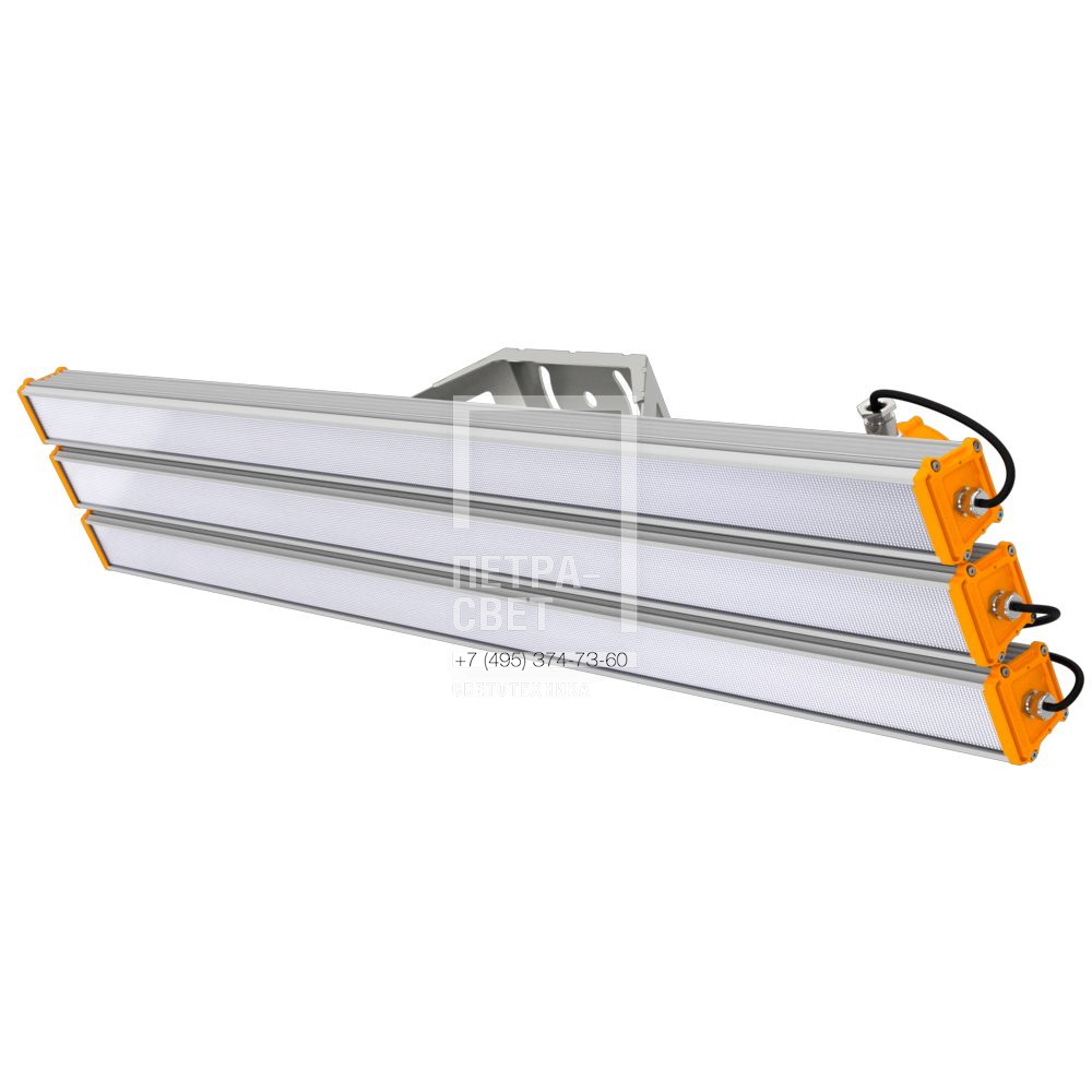 Серия линейных светодиодных светильников для освещения взрывоопасных зон класса 2. Светильник относится к электрооборудованию повышенной надежности против взрыва. «Т-Линия v2.0 Ex» имеет широкий набор исполнений: стандартное, низковольтное, с блоком аварийного питания, с возможностью управления при помощи интерфейса 0-10В или по протоколу Dali. За счет применения многомодульной конструкции светильник «Т-Линия v2.0 Ex» представлен в широком диапазоне мощностей – от 10 до 600 Вт. При необходимости светильник может быть оснащен взрывозащищенной распределительной коробкой для организации электрического подключения. [Взрывозащита] Маркировка взрывозащиты: 2 Ex nR IIC T6 Gc X/Ex tc IIIC T85C Dc X. [Корпус] Экструдированный корпус изготовлен из анодированного алюминия, устойчивого к коррозии, имеет торцевые металлические крышки с силиконовым уплотнителем. Большое количество ребер обеспечивает эффективный теплоотвод. Светильник надежно защищён от влаги и пыли (IP66), имеет широкий диапазон температуры эксплуатации от -40 °С до +50 °С. [Светодиодный модуль] Светодиодная плата изготовлена по технологии SMT с применением большого количества высокоэффективных светодиодов. [Рассеиватели и линзы] Светильники «Т-Линия v2.0 Ex» оснащаются как стандартными рассеивателями из УФ-стабилизированного поликарбоната: прозрачного, опалового и микропризматического, так и прозрачным или матовым закаленным стеклом. Светильники с прозрачным рассеивателем также представлены с широким набором оптик (10°, 15°, 25°, 50°, 90°, 10х70°, 30х50°) за счет применения индивидуальных линз из ПММА, устанавливаемых на каждый светодиод. [Источник питания] Эффективные источники питания защищены от микросекундных импульсов высокой энергии. [Крепление] Возможны различные варианты монтажа: подвесной на трос, на винт-петлю, на шпильку, на трубу (консоль), на кронштейн, на защелки J-Hook.