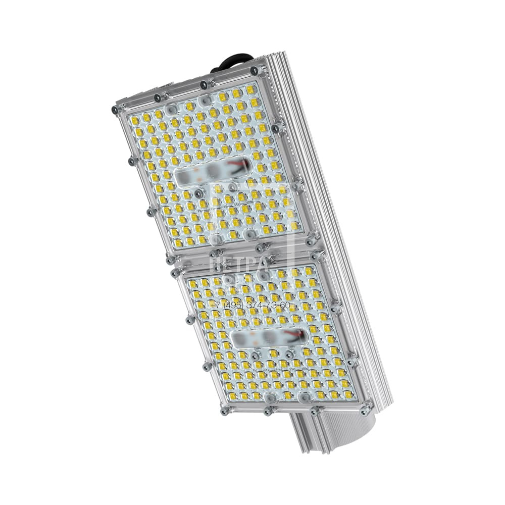 Серия наружных светодиодных светильников для освещения: • автомагистралей, • федеральных трасс и дорог местного значения, • улиц, кварталов и площадей, • наружных территорий промышленных объектов, • придомовых территорий. Серия светильников с энергоэффективностью до 164 лм/Вт в базовой комплектации. Также в серии есть модификации «Эко» (эффективность до 160 лм/Вт) и «Экстра» (эффективность до 174 лм/Вт). Светильники имеют одну из самых выгодных в линейке цену за люмен. [Светодиодный модуль] Алюминиевая светодиодная плата изготовлена по SMT-технологии. Значительное количество диодов, равномерно распределённых по большой площади, обеспечивает высокую эффективность светильника. Светодиоды работают при низких токах (50% от номинальных и ниже), что повышает эффективность светильника и увеличивает срок его службы. [Корпус] Экструдированный корпус изготовлен из анодированного алюминия и имеет большую площадь отдачи тепла (за счёт ребер и волнообразных изгибов). [Источник питания] Источник питания выполнен в металлическом корпусе, залитом теплопроводящим компаундом, за счёт чего снижается нагрев его электронных компонентов, и источник служит дольше. Защита от микросекундных импульсов высокой энергии до 15 кВ. В зависимости от мощности светильника источник питания расположен либо внутри крепёжной консоли, либо на корпусе. [Линза] Линза изготовлена из УФ-стабилизированного поликарбоната. [Крепление] Светильники крепятся на консоль круглого сечения диаметром до 57 мм. В качестве аксессуаров доступны различные поворотные консольные крепления (в базовой комплектации возможности регулировки угла наклона светильников нет).