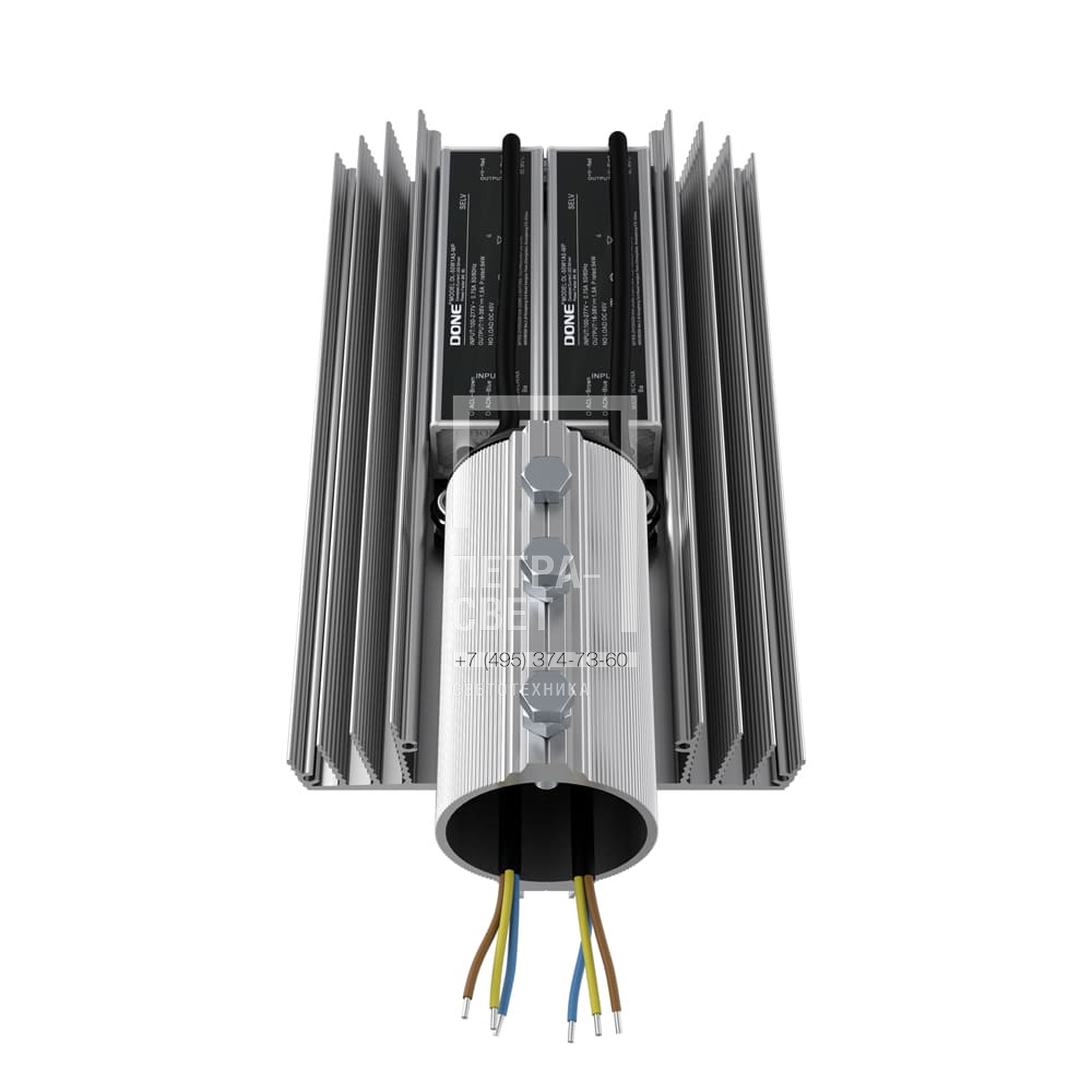 Серия наружных светодиодных светильников для освещения: • территорий СНТ и просёлочных дорог, • придомовых территорий, • скверов, • наружных промышленных зон. Светильники имеют высокую эффективность (до 170 лм/Вт) и одну из самых низких в линейке цену за люмен. В серии есть модификации «Эко» (гарантия 2 и 3 года) и «Экстра» (стандартная гарантия 5 лет). [Светодиодный модуль] Алюминиевая светодиодная плата изготовлена по SMT-технологии. Значительное количество диодов, равномерно распределённых по большой площади, обеспечивает высокую эффективность светильника. Светодиоды работают при низких токах (50% от номинальных и ниже), что повышает эффективность светильника и увеличивает срок его службы. [Корпус] Экструдированный корпус изготовлен из анодированного алюминия и имеет большую площадь отдачи тепла (за счёт ребер и волнообразных изгибов). [Источник питания] Источник питания выполнен в металлическом корпусе, залитом теплопроводящим компаундом, за счёт чего снижается нагрев его электронных компонентов, и источник служит дольше. Защита от микросекундных импульсов высокой энергии до 15 кВ. В зависимости от мощности светильника источник питания расположен либо внутри крепёжной консоли, либо на корпусе. [Линза] Линза изготовлена из УФ-стабилизированного поликарбоната. [Крепление] Светильники крепятся на консоль круглого сечения диаметром до 57 мм. В качестве аксессуаров доступны различные поворотные консольные крепления (в базовой комплектации возможности регулировки угла наклона светильников нет).