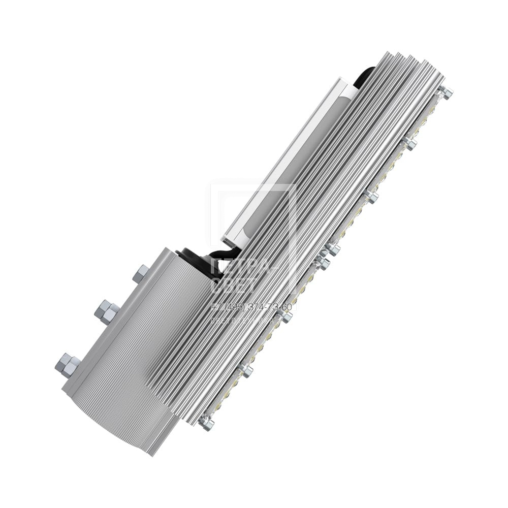 Серия наружных светодиодных светильников для освещения: • автомагистралей, • федеральных трасс и дорог местного значения, • улиц, кварталов и площадей, • наружных территорий промышленных объектов, • придомовых территорий. Серия светильников с энергоэффективностью до 164 лм/Вт в базовой комплектации. Также в серии есть модификации «Эко» (эффективность до 160 лм/Вт) и «Экстра» (эффективность до 174 лм/Вт). Светильники имеют одну из самых выгодных в линейке цену за люмен. [Светодиодный модуль] Алюминиевая светодиодная плата изготовлена по SMT-технологии. Значительное количество диодов, равномерно распределённых по большой площади, обеспечивает высокую эффективность светильника. Светодиоды работают при низких токах (50% от номинальных и ниже), что повышает эффективность светильника и увеличивает срок его службы. [Корпус] Экструдированный корпус изготовлен из анодированного алюминия и имеет большую площадь отдачи тепла (за счёт ребер и волнообразных изгибов). [Источник питания] Источник питания выполнен в металлическом корпусе, залитом теплопроводящим компаундом, за счёт чего снижается нагрев его электронных компонентов, и источник служит дольше. Защита от микросекундных импульсов высокой энергии до 15 кВ. В зависимости от мощности светильника источник питания расположен либо внутри крепёжной консоли, либо на корпусе. [Линза] Линза изготовлена из УФ-стабилизированного поликарбоната. [Крепление] Светильники крепятся на консоль круглого сечения диаметром до 57 мм. В качестве аксессуаров доступны различные поворотные консольные крепления (в базовой комплектации возможности регулировки угла наклона светильников нет).