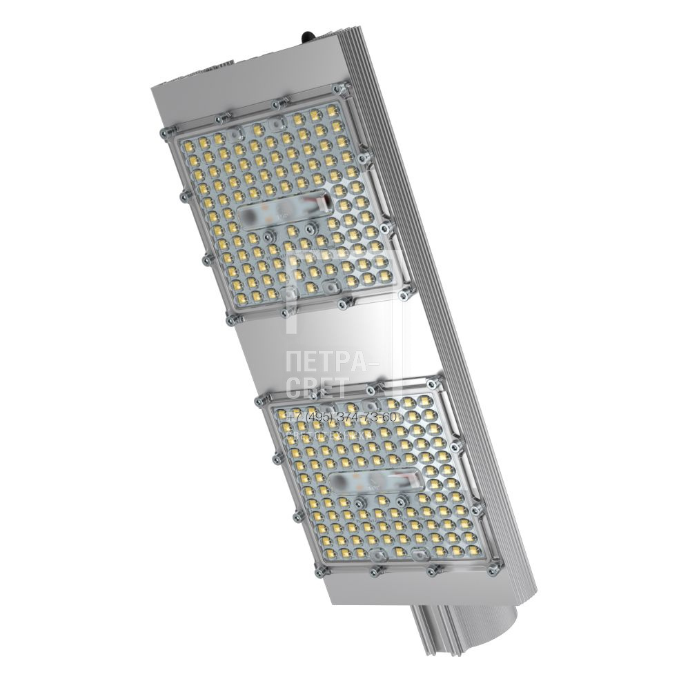 Серия наружных светодиодных светильников для освещения: • автомагистралей, • федеральных трасс и дорог местного значения, • улиц, кварталов и площадей, • наружных территорий промышленных объектов, • придомовых территорий. Серия светильников с энергоэффективностью до 164 лм/Вт в базовой комплектации. Также в серии есть модификации «Эко» (эффективность до 160 лм/Вт) и «Экстра» (эффективность до 174 лм/Вт). Светильники имеют одну из самых выгодных в линейке цену за люмен. [Светодиодный модуль] Алюминиевая светодиодная плата изготовлена по SMT-технологии. Значительное количество диодов, равномерно распределённых по большой площади, обеспечивает высокую эффективность светильника. Светодиоды работают при низких токах (50% от номинальных и ниже), что повышает эффективность светильника и увеличивает срок его службы. [Корпус] Экструдированный корпус изготовлен из анодированного алюминия и имеет большую площадь отдачи тепла (за счёт ребер и волнообразных изгибов). [Источник питания] Источник питания выполнен в металлическом корпусе, залитом теплопроводящим компаундом, за счёт чего снижается нагрев его электронных компонентов, и источник служит дольше. Защита от микросекундных импульсов высокой энергии до 15 кВ. В зависимости от мощности светильника источник питания расположен либо внутри крепёжной консоли, либо на корпусе. [Линза] Линза изготовлена из УФ-стабилизированного поликарбоната. [Крепление] Светильники крепятся на консоль круглого сечения диаметром до 57 мм. В качестве аксессуаров доступны различные поворотные консольные крепления (в базовой комплектации возможности регулировки угла наклона светильников нет).