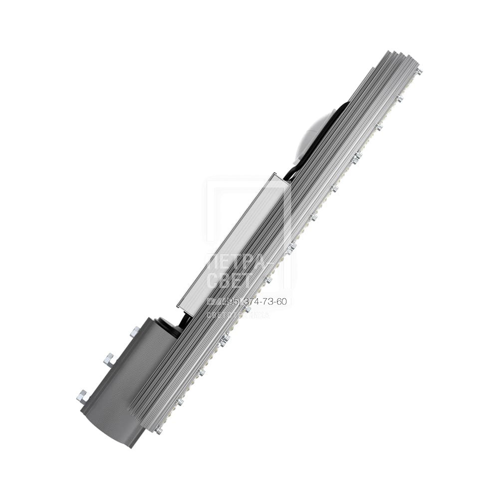 Серия наружных светодиодных светильников для освещения: • автомагистралей, • федеральных трасс и дорог местного значения, • улиц, кварталов и площадей, • наружных территорий промышленных объектов, • придомовых территорий. Серия светильников с энергоэффективностью до 164 лм/Вт в базовой комплектации. Также в серии есть модификации «Эко» (эффективность до 160 лм/Вт) и «Экстра» (эффективность до 174 лм/Вт). Светильники имеют одну из самых выгодных в линейке цену за люмен. [Светодиодный модуль] Алюминиевая светодиодная плата изготовлена по SMT-технологии. Значительное количество диодов, равномерно распределённых по большой площади, обеспечивает высокую эффективность светильника. Светодиоды работают при низких токах (50% от номинальных и ниже), что повышает эффективность светильника и увеличивает срок его службы. [Корпус] Экструдированный корпус изготовлен из анодированного алюминия и имеет большую площадь отдачи тепла (за счёт ребер и волнообразных изгибов). [Источник питания] Источник питания выполнен в металлическом корпусе, залитом теплопроводящим компаундом, за счёт чего снижается нагрев его электронных компонентов, и источник служит дольше. Защита от микросекундных импульсов высокой энергии до 15 кВ. В зависимости от мощности светильника источник питания расположен либо внутри крепёжной консоли, либо на корпусе. [Линза] Линза изготовлена из УФ-стабилизированного поликарбоната. [Крепление] Светильники крепятся на консоль круглого сечения диаметром до 57 мм. В качестве аксессуаров доступны различные поворотные консольные крепления (в базовой комплектации возможности регулировки угла наклона светильников нет).