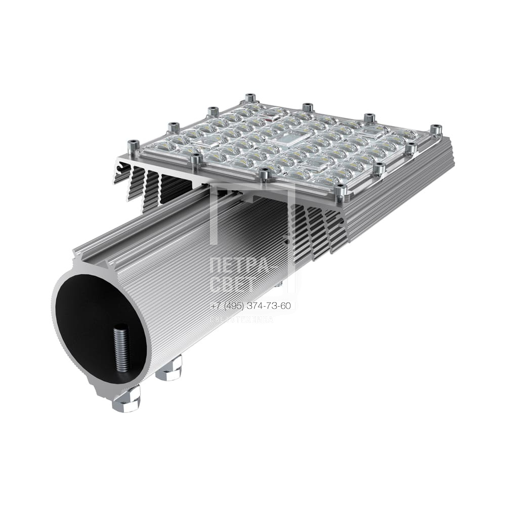 Серия наружных светодиодных светильников для освещения: • территорий СНТ и просёлочных дорог, • придомовых территорий, • скверов, • наружных промышленных зон. Светильники имеют высокую эффективность (до 170 лм/Вт) и одну из самых низких в линейке цену за люмен. В серии есть модификации «Эко» (гарантия 2 и 3 года) и «Экстра» (стандартная гарантия 5 лет). [Светодиодный модуль] Алюминиевая светодиодная плата изготовлена по SMT-технологии. Значительное количество диодов, равномерно распределённых по большой площади, обеспечивает высокую эффективность светильника. Светодиоды работают при низких токах (50% от номинальных и ниже), что повышает эффективность светильника и увеличивает срок его службы. [Корпус] Экструдированный корпус изготовлен из анодированного алюминия и имеет большую площадь отдачи тепла (за счёт ребер и волнообразных изгибов). [Источник питания] Источник питания выполнен в металлическом корпусе, залитом теплопроводящим компаундом, за счёт чего снижается нагрев его электронных компонентов, и источник служит дольше. Защита от микросекундных импульсов высокой энергии до 15 кВ. В зависимости от мощности светильника источник питания расположен либо внутри крепёжной консоли, либо на корпусе. [Линза] Линза изготовлена из УФ-стабилизированного поликарбоната. [Крепление] Светильники крепятся на консоль круглого сечения диаметром до 57 мм. В качестве аксессуаров доступны различные поворотные консольные крепления (в базовой комплектации возможности регулировки угла наклона светильников нет).