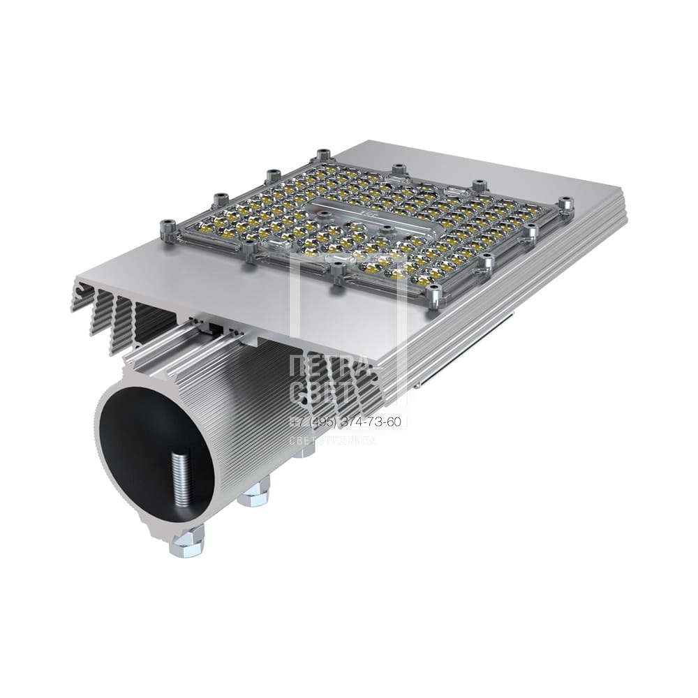 Серия наружных светодиодных светильников для освещения: • автомагистралей, • федеральных трасс и дорог местного значения, • улиц, кварталов и площадей, • наружных территорий промышленных объектов, • придомовых территорий. Энергоэффективные светильники с гарантией 7 лет. Такой срок обеспечивается за счёт улучшенного теплоотвода и надёжных источников питания (с 7-летней гарантией от производителя). [Светодиодный модуль] Алюминиевая светодиодная плата изготовлена по SMT-технологии. Значительное количество диодов, равномерно распределённых по большой площади, обеспечивает высокую эффективность светильника. Светодиоды работают при низких токах (50% от номинальных и ниже), что повышает эффективность светильника и увеличивает срок его службы. [Корпус] Экструдированный корпус изготовлен из анодированного алюминия и имеет большую площадь отдачи тепла (за счёт ребер и волнообразных изгибов). Для еще лучшего теплоотвода у этой серии светильников увеличена длина профиля. [Источник питания] Источник питания выполнен в металлическом корпусе, залитом теплопроводящим компаундом, за счёт чего снижается нагрев его электронных компонентов, и источник служит дольше. Защита от микросекундных импульсов высокой энергии до 6 кВ. В светильниках с мощностями 30 Вт источник питания расположен внутри крепёжной консоли. В светильниках с мощностями от 50 Вт используются источники наружного исполнения, которые располагаются непосредственно на корпусе. [Линза] Линза изготовлена из УФ-стабилизированного поликарбоната. [Крепление] Светильники крепятся на консоль круглого сечения диаметром до 57 мм. Данная серия не имеет возможности регулировки угла наклона светильников.