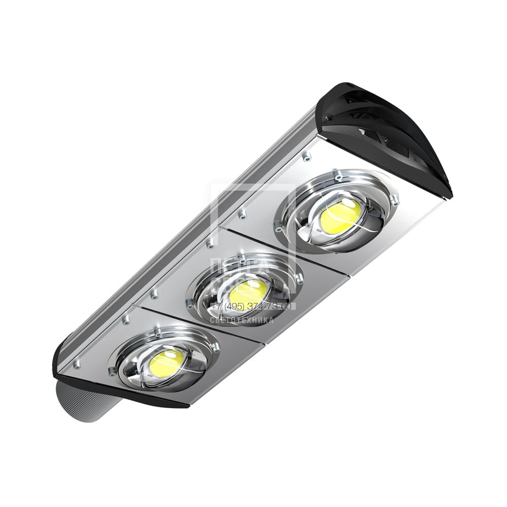 Серия наружных светодиодных светильников для освещения: • автомагистралей, • федеральных трасс и дорог местного значения, • улиц, кварталов и площадей, • наружных территорий промышленных объектов, • придомовых территорий. Светильники с энергоэффективностью до 123 лм/Вт. Преимущества серии: • боросиликатная линза, которая не мутнеет, не желтеет и не царапается; • возможность замены светодиодного модуля и источника питания без демонтажа светильника. [Светодиодный модуль] Светодиодная плата изготовлена по технологии COB. [Корпус] Экструдированный корпус изготовлен из анодированного алюминия и имеет 3 части: • основание, на которое крепится светодиодный модуль. Оно имеет рёбра охлаждения с большой площадью отвода тепла от диодов; • крышка корпуса полукруглой формы без рёбер – за счёт этого на ней не скапливаются снег, листья и прочие загрязнения; • крепёжная консоль. Конструкция корпуса позволяет менять источник питания и основание со светодиодным модулем без демонтажа светильника с опоры. [Источник питания] Источник питания в металлическом корпусе залит теплопроводящим компаундом и защищен от микросекундных импульсов высокой энергии. Источник установлен внутри светильника. [Линза] Линза изготовлена из боросиликатного стекла, которое не мутнеет, не желтеет и не царапается. Варианты оптики: 45, 60, 90, 120 и 140х85 градусов. [Крепление] Светильники крепятся на консоль круглого сечения диаметром до 57 мм. В качестве аксессуаров доступны различные поворотные консольные крепления (в базовой комплектации возможности регулировки угла наклона светильников нет).