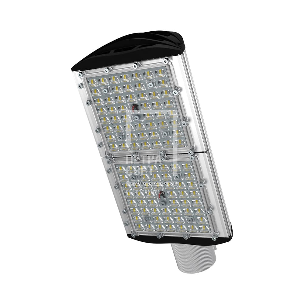 Серия наружных светодиодных светильников для освещения: • территорий СНТ и просёлочных дорог, • придомовых территорий, • скверов, • наружных промышленных зон. Светильники со световой отдачей до 160 лм/Вт. Преимуществом серии является возможность замены светодиодного модуля и источника питания без демонтажа светильника. [Корпус] Экструдированный корпус изготовлен из анодированного алюминия и имеет 3 части: • основание, на которое крепится светодиодный модуль. Оно имеет рёбра охлаждения с большой площадью отвода тепла от диодов; • крышка корпуса полукруглой формы без рёбер – за счёт этого на ней не скапливаются снег, листья и прочие загрязнения; • крепёжная консоль. Конструкция корпуса позволяет менять источник питания и основание со светодиодным модулем без демонтажа светильника с опоры. [Источник питания] Источник питания имеет металлический корпус, установлен внутри светильника и залит теплопроводящим компаундом. Защищен от микросекундных импульсов высокой энергии. [Светодиодный модуль] Алюминиевая светодиодная плата изготовлена по SMT-технологии. Значительное количество диодов, равномерно распределённых по большой площади, обеспечивает высокую эффективность светильника. Светодиоды работают при низких токах (50% от номинальных и ниже), что повышает эффективность светильника и увеличивает срок его службы. [Линза] Линза изготовлена из УФ-стабилизированного поликарбоната. [Крепление] Светильники крепятся на консоль круглого сечения диаметром до 57 мм. Данная серия не имеет возможности регулировки угла наклона светильников.