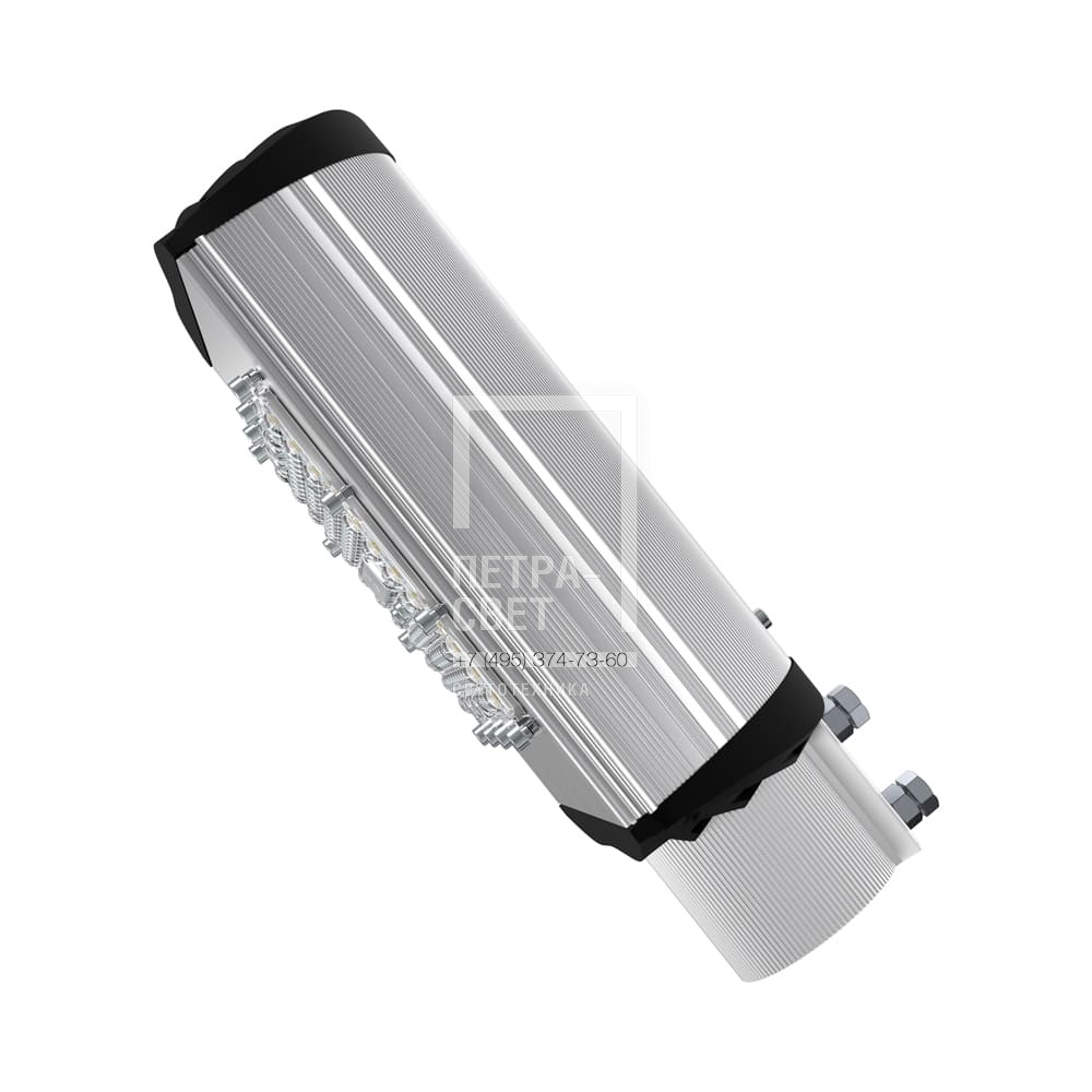 Серия наружных светодиодных светильников для освещения: • автомагистралей, • федеральных трасс и дорог местного значения, • улиц, кварталов и площадей, • наружных территорий промышленных объектов, • придомовых территорий. Серия светильников с энергоэффективностью до 164 лм/Вт в базовой комплектации. Также в серии есть модификации «Эко» (эффективность до 160 лм/Вт) и «Экстра» (эффективность до 174 лм/Вт). Преимуществом серии является возможность замены светодиодного модуля и источника питания без демонтажа светильника. [Светодиодный модуль] Алюминиевая светодиодная плата изготовлена по SMT-технологии. Значительное количество диодов, равномерно распределённых по большой площади, обеспечивает высокую эффективность светильника. Светодиоды работают при низких токах (50% от номинальных и ниже), что повышает эффективность светильника и увеличивает срок его службы. [Корпус] Экструдированный корпус изготовлен из анодированного алюминия и имеет 3 части: • основание, на которое крепится светодиодный модуль. Оно имеет рёбра охлаждения с большой площадью отвода тепла от диодов; • крышка корпуса полукруглой формы без рёбер – за счёт этого на ней не скапливаются снег, листья и прочие загрязнения; • крепёжная консоль. Конструкция корпуса позволяет менять источник питания и основание со светодиодным модулем без демонтажа светильника с опоры. [Источник питания] Источник питания имеет металлический корпус, установлен внутри светильника и залит теплопроводящим компаундом. Защита от микросекундных импульсов высокой энергии до 6 кВ. [Линза] Линза изготовлена из УФ-стабилизированного поликарбоната. [Крепление] Светильники крепятся на консоль круглого сечения диаметром до 57 мм. Данная серия не имеет возможности регулировки угла наклона светильников.