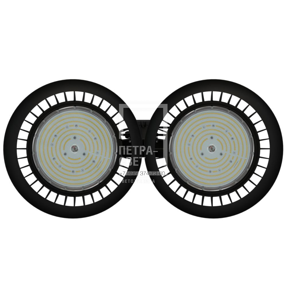 Серия подвесных светодиодных светильников для освещения · промышленных цехов и производственных площадок, · складских помещений, · спортивных объектов, · прочих площадей с высотой подвеса светильников до 50 метров. Светильник «Профи Нео х2 L» имеет высокую световую отдачу (до 191 лм/Вт) и выполнен в литом корпусе. Его конструкция предполагает опциональную установку защитного закалённого стекла (для оптик 60, 90 и 120 градусов). Наличие такого стекла позволит использовать «Профи Нео х2 L»» в зонах разных классов пожароопасности, а также упростит обслуживание светильников. [Корпус] Литой корпус из алюминиевого сплава выполняет функцию радиатора и эффективно отводит тепло от диодов, обеспечивая долгий срок их службы. Форма корпуса создаёт необходимый защитный угол, поэтому не требуется установка дополнительного отражателя. [Светодиодный модуль] Светодиодный модуль содержит значительное количество диодов, равномерно распределённых по большой площади. За счёт этого снижается габаритная яркость и обеспечивается комфортное неслепящее освещение. Светодиоды работают при низких токах (50% от номинальных и ниже), что повышает эффективность светильника и увеличивает срок его службы. [Линза] Линза изготовлена из УФ-стабилизированного поликарбоната, устойчивого к механическим воздействиям. Поэтому снижается риск повредить оптику при монтаже. [Источник питания] Источник питания наружного исполнения, его металлический корпус залит теплопроводящим компаундом. За счёт этого снижается нагрев светодиодного модуля и самого источника питания, поэтому светильник служит дольше. Также источник питания защищён от микросекундных импульсов высокой энергии до 6 кВ. Это позволит сохранить работоспособность светильника даже при появлении в cети помех от другого оборудования. [Крепление и монтаж] Светильники можно монтировать на рым-болт(базовая комплектация) или кронштейн (опционально).