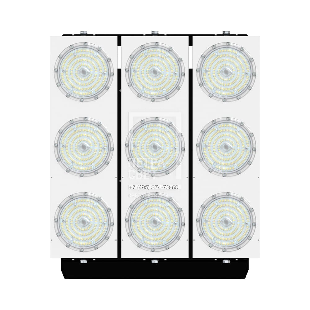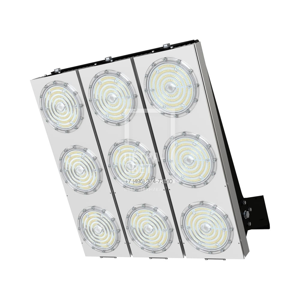 Серия промышленных светодиодных прожекторов для освещения: • спортивных площадок, бассейнов, теннисных кортов; • площадей, открытых парковок; • складов, • производственных помещений. Серия «Плазма D» – это светильники с высокой энергоэффективностью (до 183 лм/Вт) и круглыми линзами. Прожекторы имеют оптимальное соотношение эффективности и цены за люмен, а широкий мощностной ряд позволяет решать самые разные светотехнические задачи. У «Плазм D» есть модификация «Box», в которой источники питания размещаются в монтажном шкафу. Также это исполнение имеет поворотные модули, которые можно ориентировать независимо друг от друга в разных направлениях. Количество модулей варьируется в зависимости от мощности светильника. [Светодиодный модуль] Светодиодный модуль содержит значительное количество диодов, равномерно распределённых по большой площади. Светодиоды работают при низких токах (50% от номинальных и ниже), что повышает эффективность светильника и увеличивает срок его службы. [Источник питания] Источник питания наружного исполнения, его металлический корпус залит теплопроводящим компаундом. За счёт этого снижается нагрев светодиодного модуля и самого источника питания, поэтому светильник служит дольше. Также источник питания защищён от микросекундных импульсов высокой энергии. Это позволяет сохранять работоспособность светильника даже при появлении в сети посторонних помех. [Линза] Линза изготовлена из УФ-стабилизированного поликарбоната, который не мутнеет, не желтеет и не трескается при эксплуатации на улице. [Корпус] Экструдированный корпус из анодированного алюминия имеет большую площадь поверхности, что обеспечивает эффективное теплоотведение от светодиодов. [Крепление] В комплекте идёт кронштейн, который позволяет регулировать угол наклона светильников. Специальные зубцы на кронштейнах дополнительно облегчают регулировку положения прожектора.