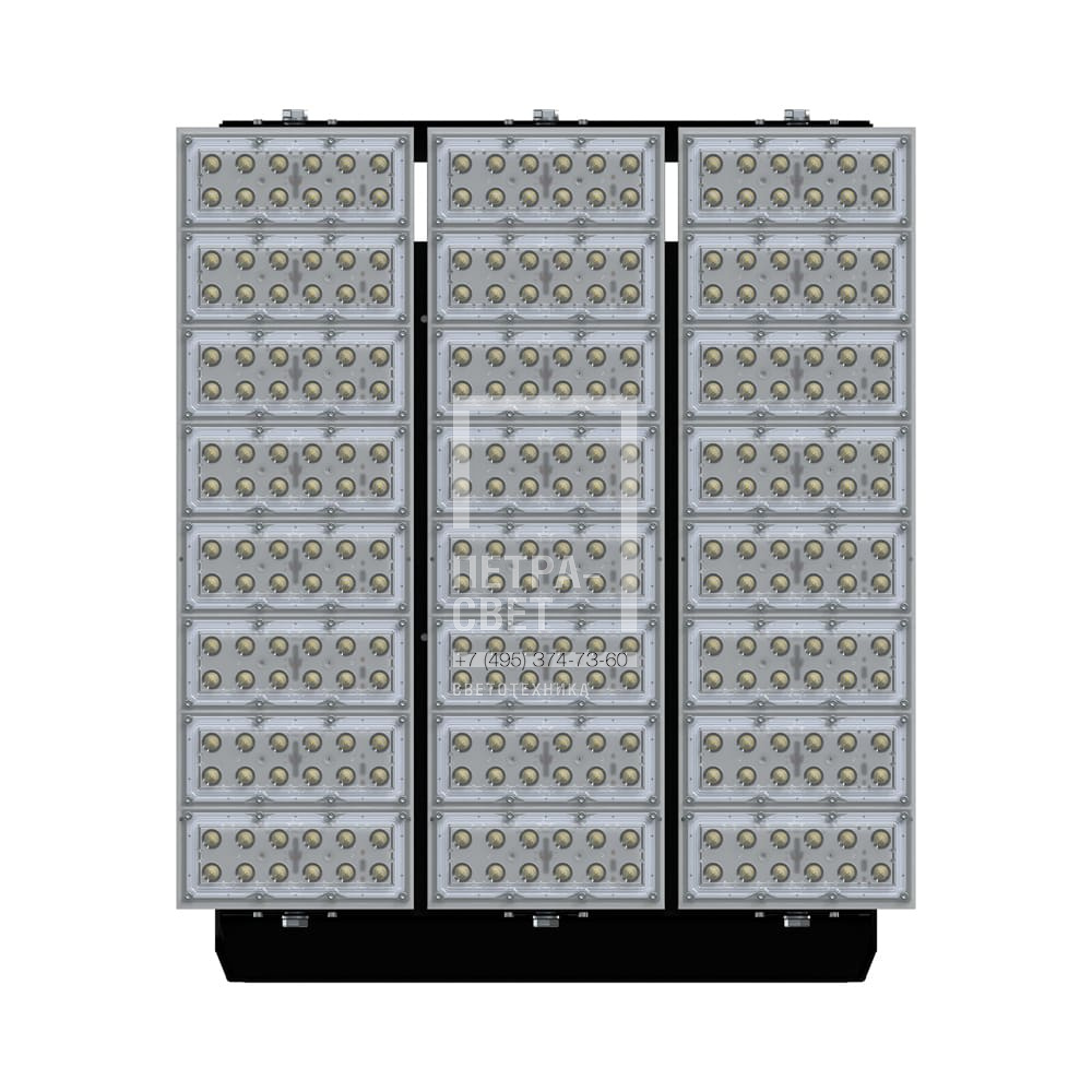 Серия промышленных светодиодных прожекторов для освещения: • футбольных полей; • крытых спортивных площадок; • складов и производственных помещений; • портов и подобных больших территорий; • открытых парковок. Серия «Плазма S» – это универсальные прожекторы c высокой эффективностью (до 163 лм/Вт) и широким набором оптик. За счёт улучшенной конструкции прожекторы обладают малыми весом и габаритами. У «Плазм S» есть модификация Box, в которой источники питания размещаются в монтажном шкафу. Также это исполнение имеет поворотные модули, которые можно ориентировать независимо друг от друга в разных направлениях. Количество модулей варьируется в зависимости от мощности светильника. [Светодиодный модуль] Светодиодный модуль состоит из мощных светодиодов, адаптированных под работу в том числе с узкой оптикой. Светодиоды установлены методом поверхностного монтажа на плату с алюминиевой основой, что обеспечивает эффективный отвод тепла от диодов к корпусу-радиатору. [Источник питания] Источник питания наружного исполнения, его металлический корпус залит теплопроводящим компаундом. За счёт этого снижается нагрев светодиодного модуля и самого источника питания, поэтому светильник служит дольше. Также источник защищён от микросекундных импульсов высокой энергии. Это позволяет сохранять работоспособность светильника даже при появлении в сети посторонних помех. [Линза] Линза изготовлена из УФ-стабилизированного поликарбоната, который не мутнеет, не желтеет и не трескается при эксплуатации на улице. [Корпус] Экструдированный корпус из анодированного алюминия имеет большую площадь поверхности, что обеспечивает эффективное теплоотведение от светодиодов. [Кронштейн] В комплекте идёт кронштейн, который позволяет регулировать угол наклона светильников. Специальные зубцы на кронштейнах дополнительно облегчают регулировку положения прожектора.