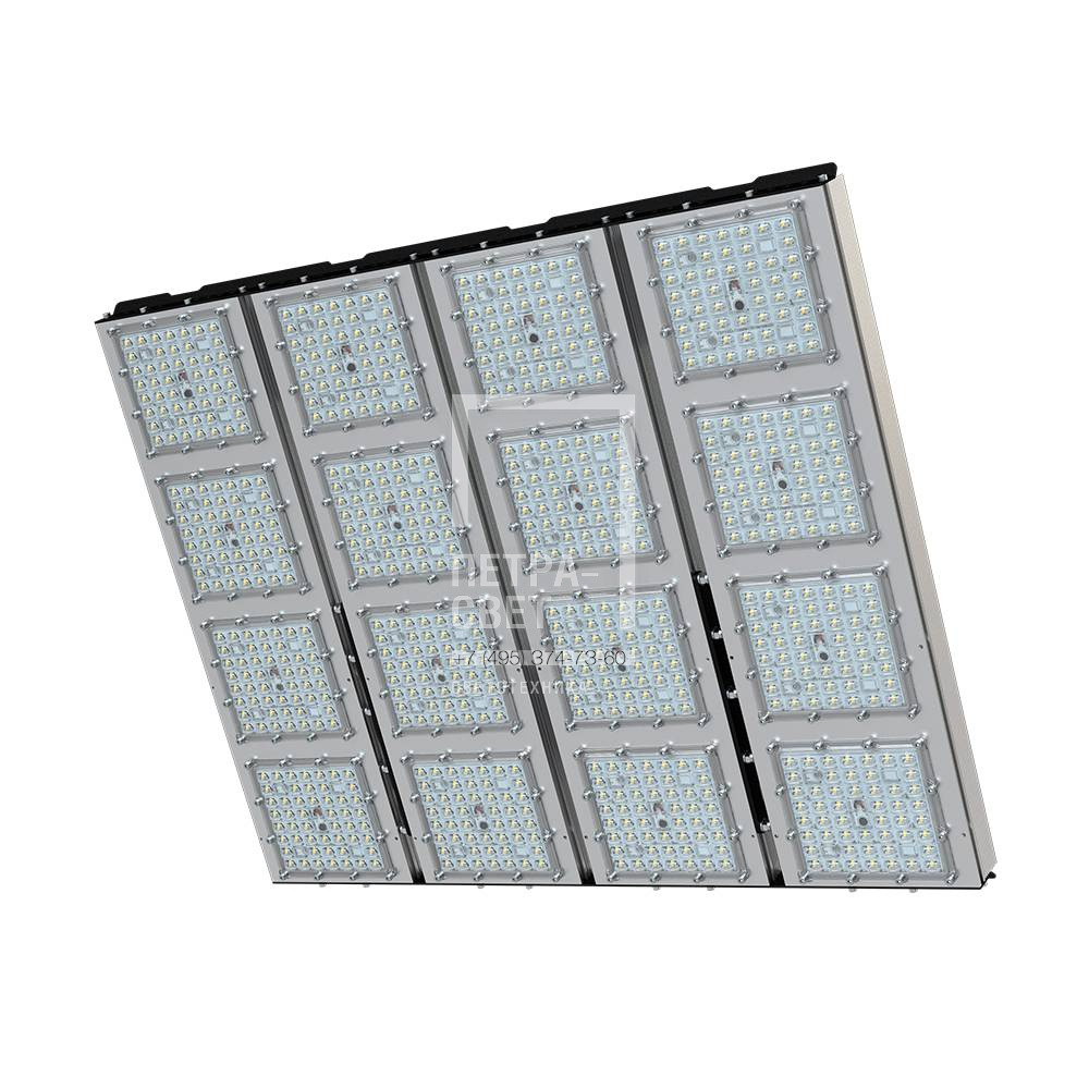 Серия промышленных светодиодных прожекторов для освещения: • футбольных полей; • крытых спортивных площадок; • складов и производственных помещений; • портов и подобных больших территорий; • открытых парковок. Серия «Плазма S» – это универсальные прожекторы c высокой эффективностью (до 163 лм/Вт) и широким набором оптик. За счёт улучшенной конструкции прожекторы обладают малыми весом и габаритами. У «Плазм S» есть модификация Box, в которой источники питания размещаются в монтажном шкафу. Также это исполнение имеет поворотные модули, которые можно ориентировать независимо друг от друга в разных направлениях. Количество модулей варьируется в зависимости от мощности светильника. [Светодиодный модуль] Светодиодный модуль состоит из мощных светодиодов, адаптированных под работу в том числе с узкой оптикой. Светодиоды установлены методом поверхностного монтажа на плату с алюминиевой основой, что обеспечивает эффективный отвод тепла от диодов к корпусу-радиатору. [Источник питания] Источник питания наружного исполнения, его металлический корпус залит теплопроводящим компаундом. За счёт этого снижается нагрев светодиодного модуля и самого источника питания, поэтому светильник служит дольше. Также источник защищён от микросекундных импульсов высокой энергии. Это позволяет сохранять работоспособность светильника даже при появлении в сети посторонних помех. [Линза] Линза изготовлена из УФ-стабилизированного поликарбоната, который не мутнеет, не желтеет и не трескается при эксплуатации на улице. [Корпус] Экструдированный корпус из анодированного алюминия имеет большую площадь поверхности, что обеспечивает эффективное теплоотведение от светодиодов. [Кронштейн] В комплекте идёт кронштейн, который позволяет регулировать угол наклона светильников. Специальные зубцы на кронштейнах дополнительно облегчают регулировку положения прожектора.