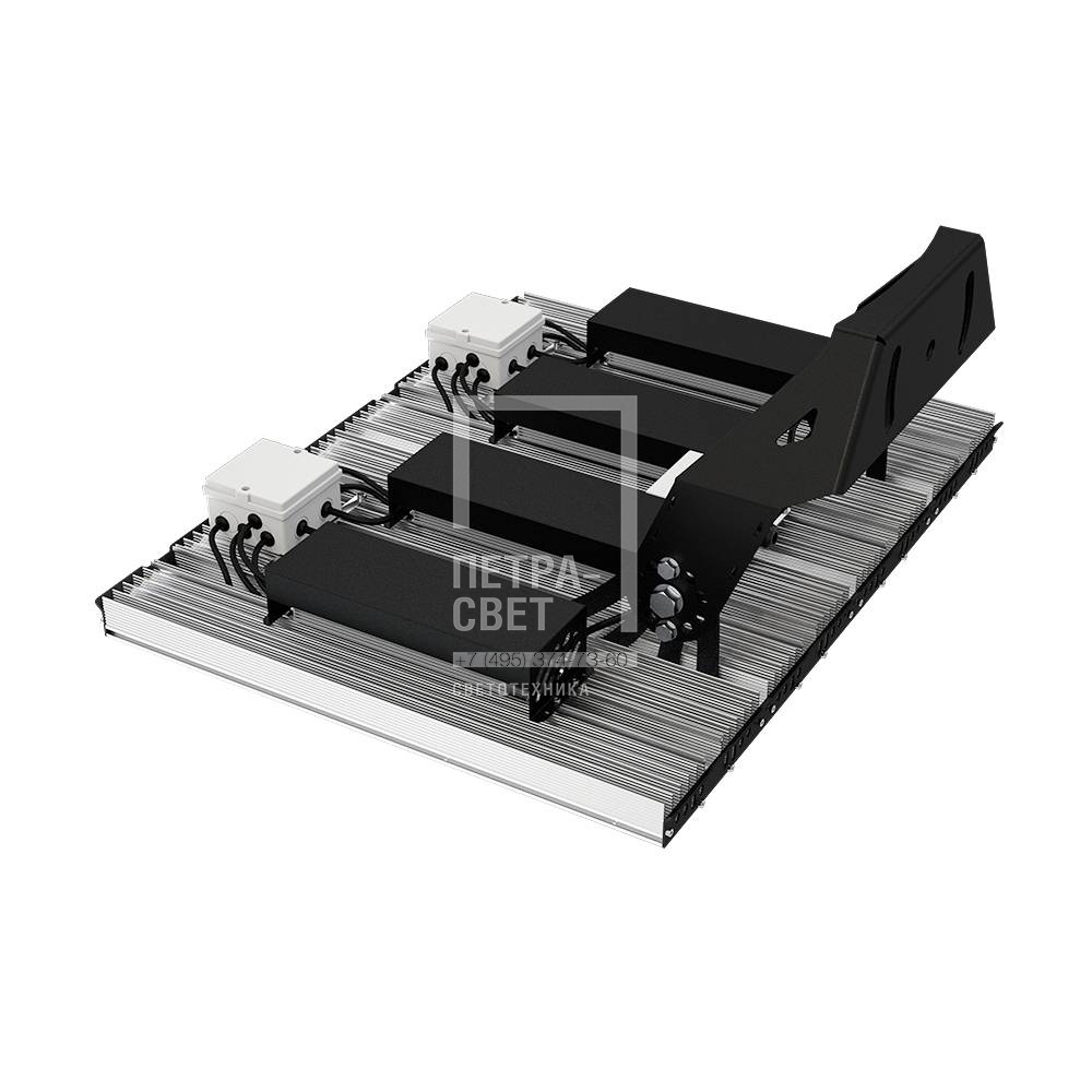 Серия промышленных светодиодных прожекторов для освещения: • футбольных полей; • крытых спортивных площадок; • складов и производственных помещений; • портов и подобных больших территорий; • открытых парковок. Серия «Плазма S» – это универсальные прожекторы c высокой эффективностью (до 163 лм/Вт) и широким набором оптик. За счёт улучшенной конструкции прожекторы обладают малыми весом и габаритами. У «Плазм S» есть модификация Box, в которой источники питания размещаются в монтажном шкафу. Также это исполнение имеет поворотные модули, которые можно ориентировать независимо друг от друга в разных направлениях. Количество модулей варьируется в зависимости от мощности светильника. [Светодиодный модуль] Светодиодный модуль состоит из мощных светодиодов, адаптированных под работу в том числе с узкой оптикой. Светодиоды установлены методом поверхностного монтажа на плату с алюминиевой основой, что обеспечивает эффективный отвод тепла от диодов к корпусу-радиатору. [Источник питания] Источник питания наружного исполнения, его металлический корпус залит теплопроводящим компаундом. За счёт этого снижается нагрев светодиодного модуля и самого источника питания, поэтому светильник служит дольше. Также источник защищён от микросекундных импульсов высокой энергии. Это позволяет сохранять работоспособность светильника даже при появлении в сети посторонних помех. [Линза] Линза изготовлена из УФ-стабилизированного поликарбоната, который не мутнеет, не желтеет и не трескается при эксплуатации на улице. [Корпус] Экструдированный корпус из анодированного алюминия имеет большую площадь поверхности, что обеспечивает эффективное теплоотведение от светодиодов. [Кронштейн] В комплекте идёт кронштейн, который позволяет регулировать угол наклона светильников. Специальные зубцы на кронштейнах дополнительно облегчают регулировку положения прожектора.