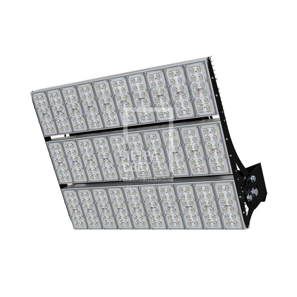 Серия промышленных светодиодных прожекторов для освещения: • футбольных полей; • крытых спортивных площадок; • складов и производственных помещений; • портов и подобных больших территорий; • открытых парковок. Серия «Плазма S» – это универсальные прожекторы c высокой эффективностью (до 163 лм/Вт) и широким набором оптик. За счёт улучшенной конструкции прожекторы обладают малыми весом и габаритами. У «Плазм S» есть модификация Box, в которой источники питания размещаются в монтажном шкафу. Также это исполнение имеет поворотные модули, которые можно ориентировать независимо друг от друга в разных направлениях. Количество модулей варьируется в зависимости от мощности светильника. [Светодиодный модуль] Светодиодный модуль состоит из мощных светодиодов, адаптированных под работу в том числе с узкой оптикой. Светодиоды установлены методом поверхностного монтажа на плату с алюминиевой основой, что обеспечивает эффективный отвод тепла от диодов к корпусу-радиатору. [Источник питания] Источник питания наружного исполнения, его металлический корпус залит теплопроводящим компаундом. За счёт этого снижается нагрев светодиодного модуля и самого источника питания, поэтому светильник служит дольше. Также источник защищён от микросекундных импульсов высокой энергии. Это позволяет сохранять работоспособность светильника даже при появлении в сети посторонних помех. [Линза] Линза изготовлена из УФ-стабилизированного поликарбоната, который не мутнеет, не желтеет и не трескается при эксплуатации на улице. [Корпус] Экструдированный корпус из анодированного алюминия имеет большую площадь поверхности, что обеспечивает эффективное теплоотведение от светодиодов. [Кронштейн] В комплекте идёт кронштейн, который позволяет регулировать угол наклона светильников. Специальные зубцы на кронштейнах дополнительно облегчают регулировку положения прожектора.