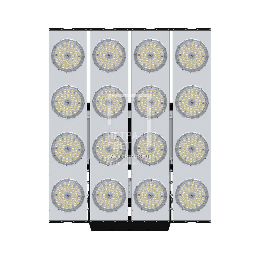 Серия промышленных светодиодных прожекторов для освещения: • спортивных площадок, бассейнов, теннисных кортов; • площадей, открытых парковок; • складов, • производственных помещений. Серия «Плазма D» – это светильники с высокой энергоэффективностью (до 183 лм/Вт) и круглыми линзами. Прожекторы имеют оптимальное соотношение эффективности и цены за люмен, а широкий мощностной ряд позволяет решать самые разные светотехнические задачи. У «Плазм D» есть модификация «Box», в которой источники питания размещаются в монтажном шкафу. Также это исполнение имеет поворотные модули, которые можно ориентировать независимо друг от друга в разных направлениях. Количество модулей варьируется в зависимости от мощности светильника. [Светодиодный модуль] Светодиодный модуль содержит значительное количество диодов, равномерно распределённых по большой площади. Светодиоды работают при низких токах (50% от номинальных и ниже), что повышает эффективность светильника и увеличивает срок его службы. [Источник питания] Источник питания наружного исполнения, его металлический корпус залит теплопроводящим компаундом. За счёт этого снижается нагрев светодиодного модуля и самого источника питания, поэтому светильник служит дольше. Также источник питания защищён от микросекундных импульсов высокой энергии. Это позволяет сохранять работоспособность светильника даже при появлении в сети посторонних помех. [Линза] Линза изготовлена из УФ-стабилизированного поликарбоната, который не мутнеет, не желтеет и не трескается при эксплуатации на улице. [Корпус] Экструдированный корпус из анодированного алюминия имеет большую площадь поверхности, что обеспечивает эффективное теплоотведение от светодиодов. [Крепление] В комплекте идёт кронштейн, который позволяет регулировать угол наклона светильников. Специальные зубцы на кронштейнах дополнительно облегчают регулировку положения прожектора.