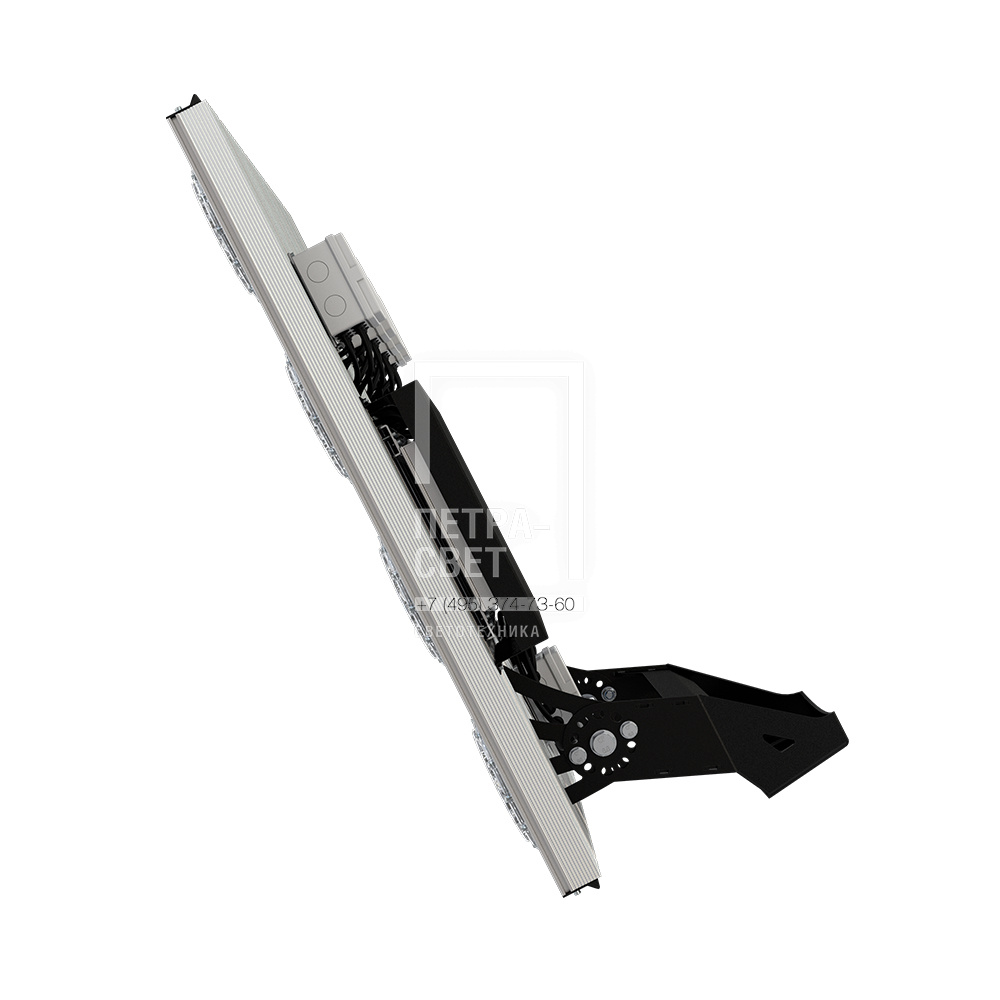 Серия промышленных светодиодных прожекторов для освещения: • спортивных площадок, бассейнов, теннисных кортов; • площадей, открытых парковок; • складов, • производственных помещений. Серия «Плазма D» – это светильники с высокой энергоэффективностью (до 183 лм/Вт) и круглыми линзами. Прожекторы имеют оптимальное соотношение эффективности и цены за люмен, а широкий мощностной ряд позволяет решать самые разные светотехнические задачи. У «Плазм D» есть модификация «Box», в которой источники питания размещаются в монтажном шкафу. Также это исполнение имеет поворотные модули, которые можно ориентировать независимо друг от друга в разных направлениях. Количество модулей варьируется в зависимости от мощности светильника. [Светодиодный модуль] Светодиодный модуль содержит значительное количество диодов, равномерно распределённых по большой площади. Светодиоды работают при низких токах (50% от номинальных и ниже), что повышает эффективность светильника и увеличивает срок его службы. [Источник питания] Источник питания наружного исполнения, его металлический корпус залит теплопроводящим компаундом. За счёт этого снижается нагрев светодиодного модуля и самого источника питания, поэтому светильник служит дольше. Также источник питания защищён от микросекундных импульсов высокой энергии. Это позволяет сохранять работоспособность светильника даже при появлении в сети посторонних помех. [Линза] Линза изготовлена из УФ-стабилизированного поликарбоната, который не мутнеет, не желтеет и не трескается при эксплуатации на улице. [Корпус] Экструдированный корпус из анодированного алюминия имеет большую площадь поверхности, что обеспечивает эффективное теплоотведение от светодиодов. [Крепление] В комплекте идёт кронштейн, который позволяет регулировать угол наклона светильников. Специальные зубцы на кронштейнах дополнительно облегчают регулировку положения прожектора.