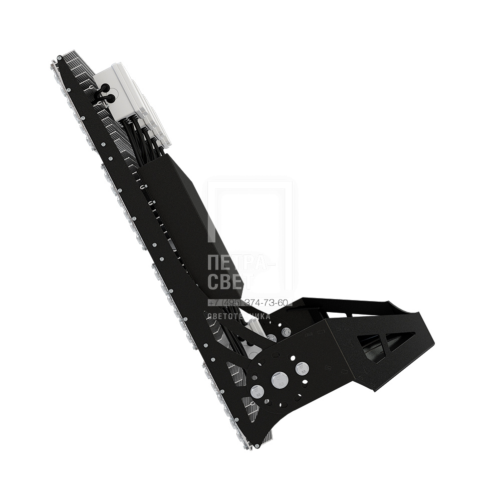 Серия промышленных светодиодных прожекторов для освещения: • футбольных полей; • крытых спортивных площадок; • складов и производственных помещений; • портов и подобных больших территорий; • открытых парковок. Серия «Плазма S» – это универсальные прожекторы c высокой эффективностью (до 163 лм/Вт) и широким набором оптик. За счёт улучшенной конструкции прожекторы обладают малыми весом и габаритами. У «Плазм S» есть модификация Box, в которой источники питания размещаются в монтажном шкафу. Также это исполнение имеет поворотные модули, которые можно ориентировать независимо друг от друга в разных направлениях. Количество модулей варьируется в зависимости от мощности светильника. [Светодиодный модуль] Светодиодный модуль состоит из мощных светодиодов, адаптированных под работу в том числе с узкой оптикой. Светодиоды установлены методом поверхностного монтажа на плату с алюминиевой основой, что обеспечивает эффективный отвод тепла от диодов к корпусу-радиатору. [Источник питания] Источник питания наружного исполнения, его металлический корпус залит теплопроводящим компаундом. За счёт этого снижается нагрев светодиодного модуля и самого источника питания, поэтому светильник служит дольше. Также источник защищён от микросекундных импульсов высокой энергии. Это позволяет сохранять работоспособность светильника даже при появлении в сети посторонних помех. [Линза] Линза изготовлена из УФ-стабилизированного поликарбоната, который не мутнеет, не желтеет и не трескается при эксплуатации на улице. [Корпус] Экструдированный корпус из анодированного алюминия имеет большую площадь поверхности, что обеспечивает эффективное теплоотведение от светодиодов. [Кронштейн] В комплекте идёт кронштейн, который позволяет регулировать угол наклона светильников. Специальные зубцы на кронштейнах дополнительно облегчают регулировку положения прожектора.