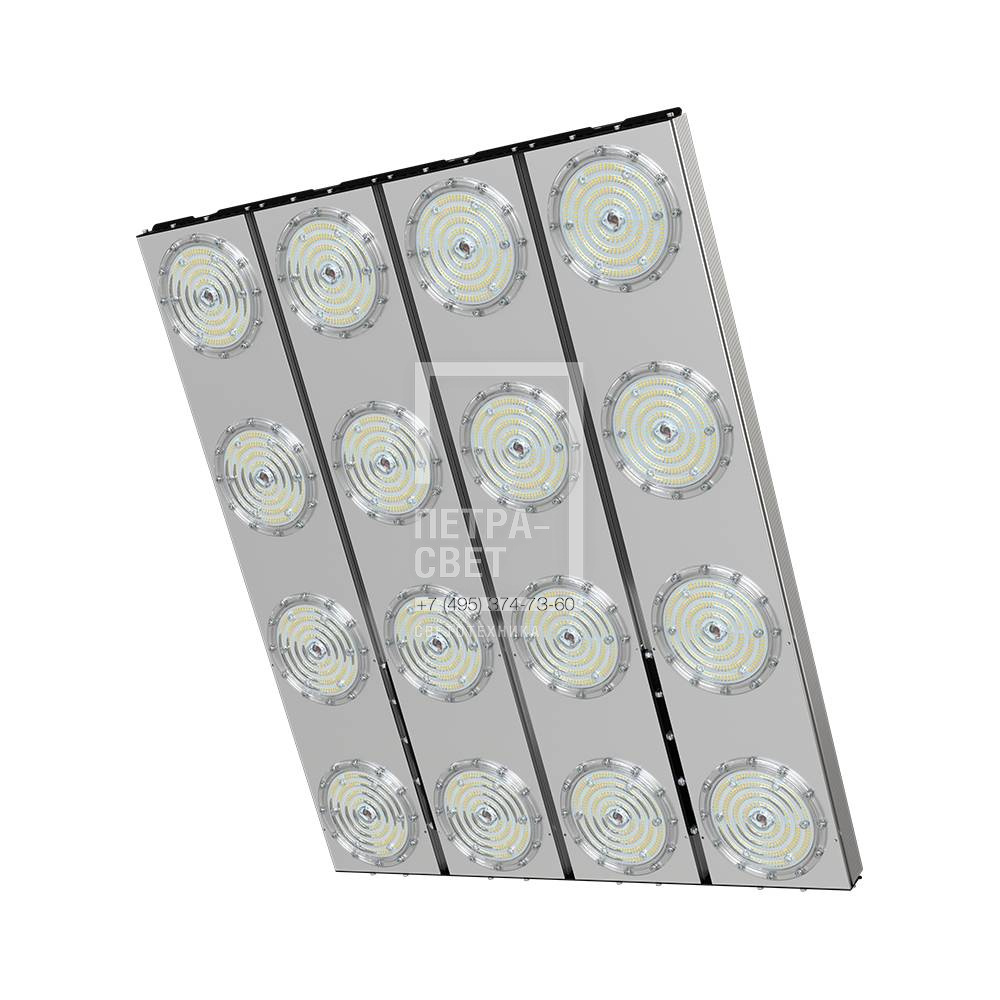 Серия промышленных светодиодных прожекторов для освещения: • спортивных площадок, бассейнов, теннисных кортов; • площадей, открытых парковок; • складов, • производственных помещений. Серия «Плазма D» – это светильники с высокой энергоэффективностью (до 183 лм/Вт) и круглыми линзами. Прожекторы имеют оптимальное соотношение эффективности и цены за люмен, а широкий мощностной ряд позволяет решать самые разные светотехнические задачи. У «Плазм D» есть модификация «Box», в которой источники питания размещаются в монтажном шкафу. Также это исполнение имеет поворотные модули, которые можно ориентировать независимо друг от друга в разных направлениях. Количество модулей варьируется в зависимости от мощности светильника. [Светодиодный модуль] Светодиодный модуль содержит значительное количество диодов, равномерно распределённых по большой площади. Светодиоды работают при низких токах (50% от номинальных и ниже), что повышает эффективность светильника и увеличивает срок его службы. [Источник питания] Источник питания наружного исполнения, его металлический корпус залит теплопроводящим компаундом. За счёт этого снижается нагрев светодиодного модуля и самого источника питания, поэтому светильник служит дольше. Также источник питания защищён от микросекундных импульсов высокой энергии. Это позволяет сохранять работоспособность светильника даже при появлении в сети посторонних помех. [Линза] Линза изготовлена из УФ-стабилизированного поликарбоната, который не мутнеет, не желтеет и не трескается при эксплуатации на улице. [Корпус] Экструдированный корпус из анодированного алюминия имеет большую площадь поверхности, что обеспечивает эффективное теплоотведение от светодиодов. [Крепление] В комплекте идёт кронштейн, который позволяет регулировать угол наклона светильников. Специальные зубцы на кронштейнах дополнительно облегчают регулировку положения прожектора.