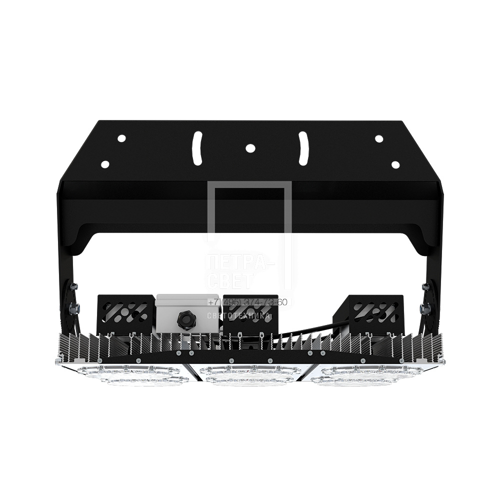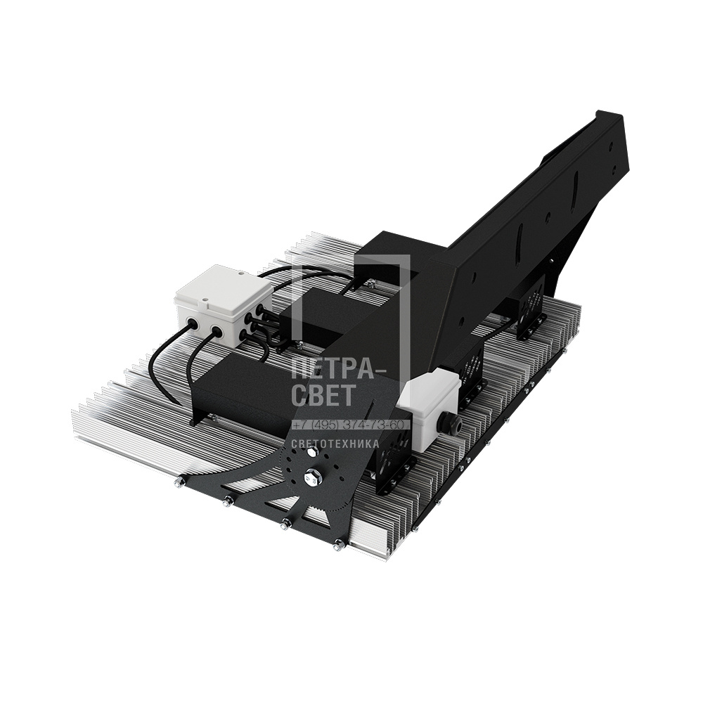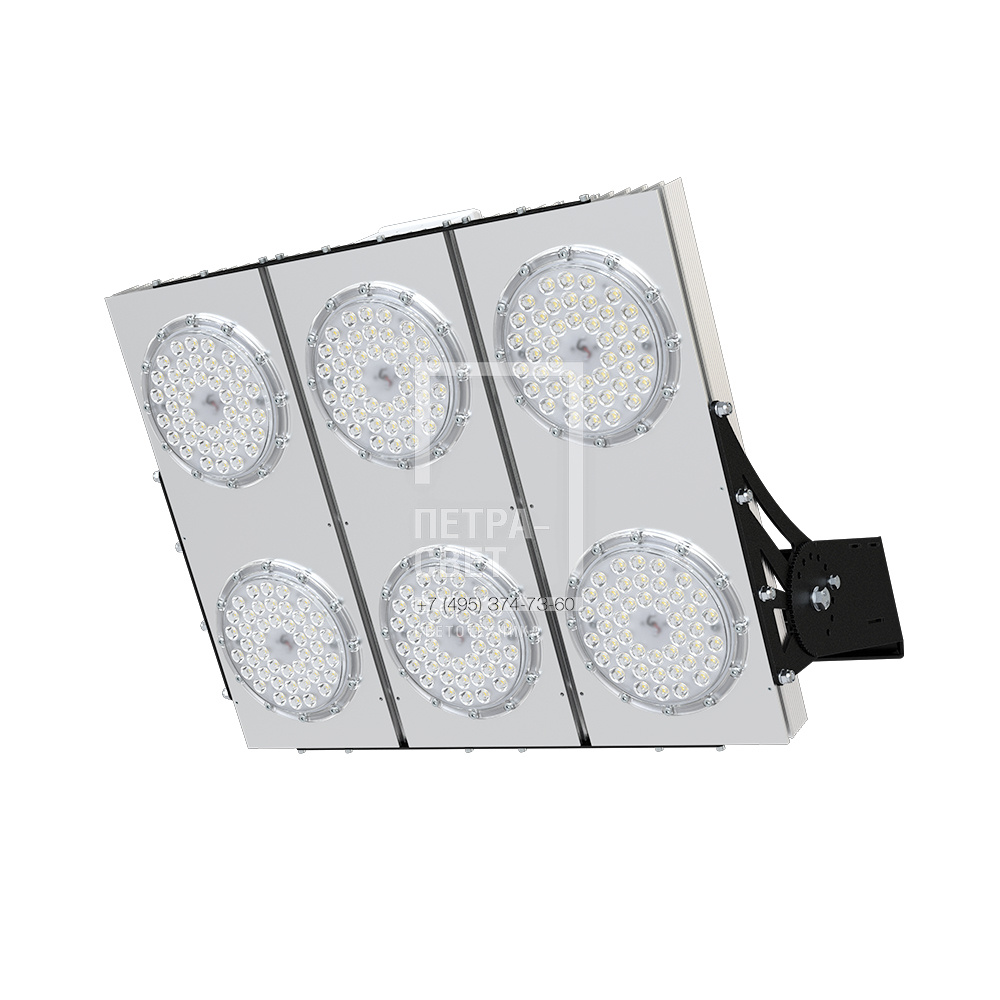 Серия промышленных светодиодных прожекторов для освещения: • спортивных площадок, бассейнов, теннисных кортов; • площадей, открытых парковок; • складов, • производственных помещений. Серия «Плазма D» – это светильники с высокой энергоэффективностью (до 183 лм/Вт) и круглыми линзами. Прожекторы имеют оптимальное соотношение эффективности и цены за люмен, а широкий мощностной ряд позволяет решать самые разные светотехнические задачи. У «Плазм D» есть модификация «Box», в которой источники питания размещаются в монтажном шкафу. Также это исполнение имеет поворотные модули, которые можно ориентировать независимо друг от друга в разных направлениях. Количество модулей варьируется в зависимости от мощности светильника. [Светодиодный модуль] Светодиодный модуль содержит значительное количество диодов, равномерно распределённых по большой площади. Светодиоды работают при низких токах (50% от номинальных и ниже), что повышает эффективность светильника и увеличивает срок его службы. [Источник питания] Источник питания наружного исполнения, его металлический корпус залит теплопроводящим компаундом. За счёт этого снижается нагрев светодиодного модуля и самого источника питания, поэтому светильник служит дольше. Также источник питания защищён от микросекундных импульсов высокой энергии. Это позволяет сохранять работоспособность светильника даже при появлении в сети посторонних помех. [Линза] Линза изготовлена из УФ-стабилизированного поликарбоната, который не мутнеет, не желтеет и не трескается при эксплуатации на улице. [Корпус] Экструдированный корпус из анодированного алюминия имеет большую площадь поверхности, что обеспечивает эффективное теплоотведение от светодиодов. [Крепление] В комплекте идёт кронштейн, который позволяет регулировать угол наклона светильников. Специальные зубцы на кронштейнах дополнительно облегчают регулировку положения прожектора.