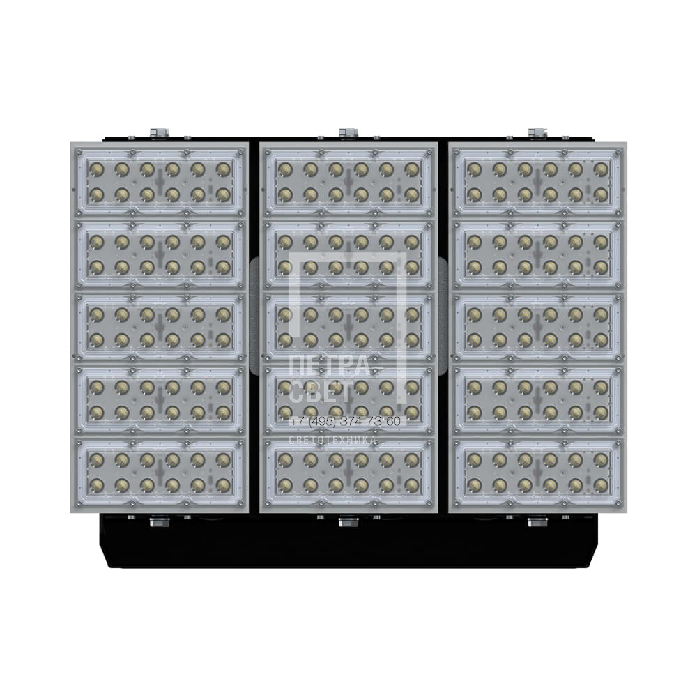 Серия промышленных светодиодных прожекторов для освещения: • футбольных полей; • крытых спортивных площадок; • складов и производственных помещений; • портов и подобных больших территорий; • открытых парковок. Серия «Плазма S» – это универсальные прожекторы c высокой эффективностью (до 163 лм/Вт) и широким набором оптик. За счёт улучшенной конструкции прожекторы обладают малыми весом и габаритами. У «Плазм S» есть модификация Box, в которой источники питания размещаются в монтажном шкафу. Также это исполнение имеет поворотные модули, которые можно ориентировать независимо друг от друга в разных направлениях. Количество модулей варьируется в зависимости от мощности светильника. [Светодиодный модуль] Светодиодный модуль состоит из мощных светодиодов, адаптированных под работу в том числе с узкой оптикой. Светодиоды установлены методом поверхностного монтажа на плату с алюминиевой основой, что обеспечивает эффективный отвод тепла от диодов к корпусу-радиатору. [Источник питания] Источник питания наружного исполнения, его металлический корпус залит теплопроводящим компаундом. За счёт этого снижается нагрев светодиодного модуля и самого источника питания, поэтому светильник служит дольше. Также источник защищён от микросекундных импульсов высокой энергии. Это позволяет сохранять работоспособность светильника даже при появлении в сети посторонних помех. [Линза] Линза изготовлена из УФ-стабилизированного поликарбоната, который не мутнеет, не желтеет и не трескается при эксплуатации на улице. [Корпус] Экструдированный корпус из анодированного алюминия имеет большую площадь поверхности, что обеспечивает эффективное теплоотведение от светодиодов. [Кронштейн] В комплекте идёт кронштейн, который позволяет регулировать угол наклона светильников. Специальные зубцы на кронштейнах дополнительно облегчают регулировку положения прожектора.