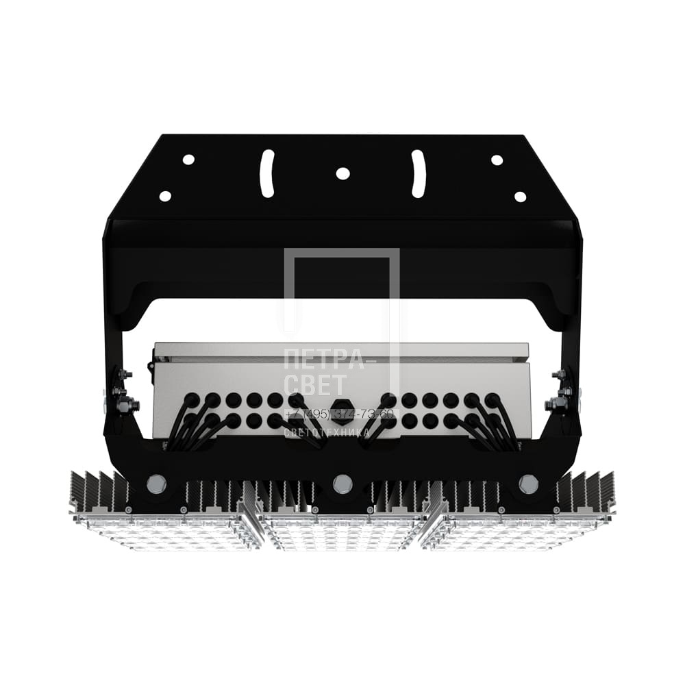 Серия промышленных светодиодных прожекторов для освещения: • футбольных полей; • крытых спортивных площадок; • складов и производственных помещений; • портов и подобных больших территорий; • открытых парковок. Серия «Плазма S» – это универсальные прожекторы c высокой эффективностью (до 163 лм/Вт) и широким набором оптик. За счёт улучшенной конструкции прожекторы обладают малыми весом и габаритами. У «Плазм S» есть модификация Box, в которой источники питания размещаются в монтажном шкафу. Также это исполнение имеет поворотные модули, которые можно ориентировать независимо друг от друга в разных направлениях. Количество модулей варьируется в зависимости от мощности светильника. [Светодиодный модуль] Светодиодный модуль состоит из мощных светодиодов, адаптированных под работу в том числе с узкой оптикой. Светодиоды установлены методом поверхностного монтажа на плату с алюминиевой основой, что обеспечивает эффективный отвод тепла от диодов к корпусу-радиатору. [Источник питания] Источник питания наружного исполнения, его металлический корпус залит теплопроводящим компаундом. За счёт этого снижается нагрев светодиодного модуля и самого источника питания, поэтому светильник служит дольше. Также источник защищён от микросекундных импульсов высокой энергии. Это позволяет сохранять работоспособность светильника даже при появлении в сети посторонних помех. [Линза] Линза изготовлена из УФ-стабилизированного поликарбоната, который не мутнеет, не желтеет и не трескается при эксплуатации на улице. [Корпус] Экструдированный корпус из анодированного алюминия имеет большую площадь поверхности, что обеспечивает эффективное теплоотведение от светодиодов. [Кронштейн] В комплекте идёт кронштейн, который позволяет регулировать угол наклона светильников. Специальные зубцы на кронштейнах дополнительно облегчают регулировку положения прожектора.