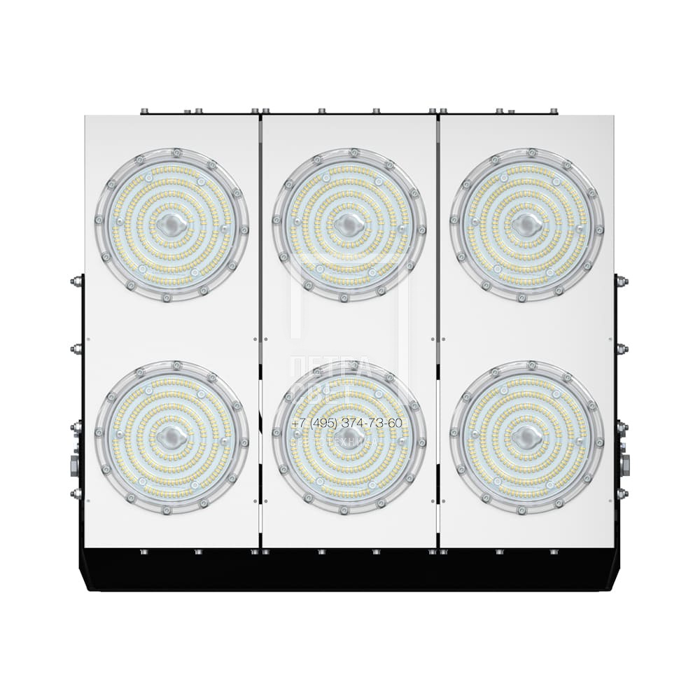 Серия промышленных светодиодных прожекторов для освещения: • спортивных площадок, бассейнов, теннисных кортов; • площадей, открытых парковок; • складов, • производственных помещений. Серия «Плазма D» – это светильники с высокой энергоэффективностью (до 183 лм/Вт) и круглыми линзами. Прожекторы имеют оптимальное соотношение эффективности и цены за люмен, а широкий мощностной ряд позволяет решать самые разные светотехнические задачи. У «Плазм D» есть модификация «Box», в которой источники питания размещаются в монтажном шкафу. Также это исполнение имеет поворотные модули, которые можно ориентировать независимо друг от друга в разных направлениях. Количество модулей варьируется в зависимости от мощности светильника. [Светодиодный модуль] Светодиодный модуль содержит значительное количество диодов, равномерно распределённых по большой площади. Светодиоды работают при низких токах (50% от номинальных и ниже), что повышает эффективность светильника и увеличивает срок его службы. [Источник питания] Источник питания наружного исполнения, его металлический корпус залит теплопроводящим компаундом. За счёт этого снижается нагрев светодиодного модуля и самого источника питания, поэтому светильник служит дольше. Также источник питания защищён от микросекундных импульсов высокой энергии. Это позволяет сохранять работоспособность светильника даже при появлении в сети посторонних помех. [Линза] Линза изготовлена из УФ-стабилизированного поликарбоната, который не мутнеет, не желтеет и не трескается при эксплуатации на улице. [Корпус] Экструдированный корпус из анодированного алюминия имеет большую площадь поверхности, что обеспечивает эффективное теплоотведение от светодиодов. [Крепление] В комплекте идёт кронштейн, который позволяет регулировать угол наклона светильников. Специальные зубцы на кронштейнах дополнительно облегчают регулировку положения прожектора.