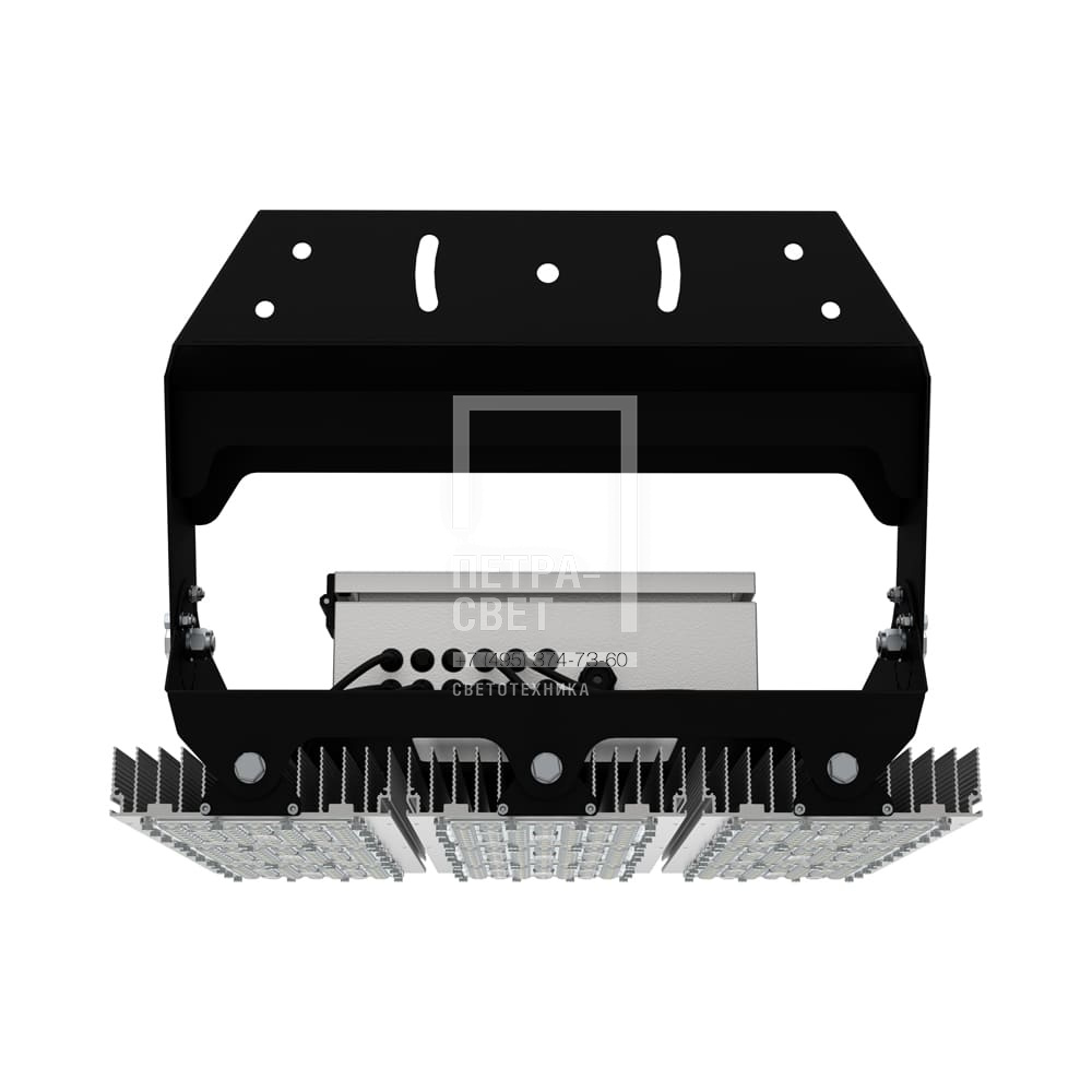 Серия промышленных светодиодных прожекторов для освещения: • футбольных полей; • крытых спортивных площадок; • складов и производственных помещений; • портов и подобных больших территорий; • открытых парковок. Серия «Плазма S» – это универсальные прожекторы c высокой эффективностью (до 163 лм/Вт) и широким набором оптик. За счёт улучшенной конструкции прожекторы обладают малыми весом и габаритами. У «Плазм S» есть модификация Box, в которой источники питания размещаются в монтажном шкафу. Также это исполнение имеет поворотные модули, которые можно ориентировать независимо друг от друга в разных направлениях. Количество модулей варьируется в зависимости от мощности светильника. [Светодиодный модуль] Светодиодный модуль состоит из мощных светодиодов, адаптированных под работу в том числе с узкой оптикой. Светодиоды установлены методом поверхностного монтажа на плату с алюминиевой основой, что обеспечивает эффективный отвод тепла от диодов к корпусу-радиатору. [Источник питания] Источник питания наружного исполнения, его металлический корпус залит теплопроводящим компаундом. За счёт этого снижается нагрев светодиодного модуля и самого источника питания, поэтому светильник служит дольше. Также источник защищён от микросекундных импульсов высокой энергии. Это позволяет сохранять работоспособность светильника даже при появлении в сети посторонних помех. [Линза] Линза изготовлена из УФ-стабилизированного поликарбоната, который не мутнеет, не желтеет и не трескается при эксплуатации на улице. [Корпус] Экструдированный корпус из анодированного алюминия имеет большую площадь поверхности, что обеспечивает эффективное теплоотведение от светодиодов. [Кронштейн] В комплекте идёт кронштейн, который позволяет регулировать угол наклона светильников. Специальные зубцы на кронштейнах дополнительно облегчают регулировку положения прожектора.