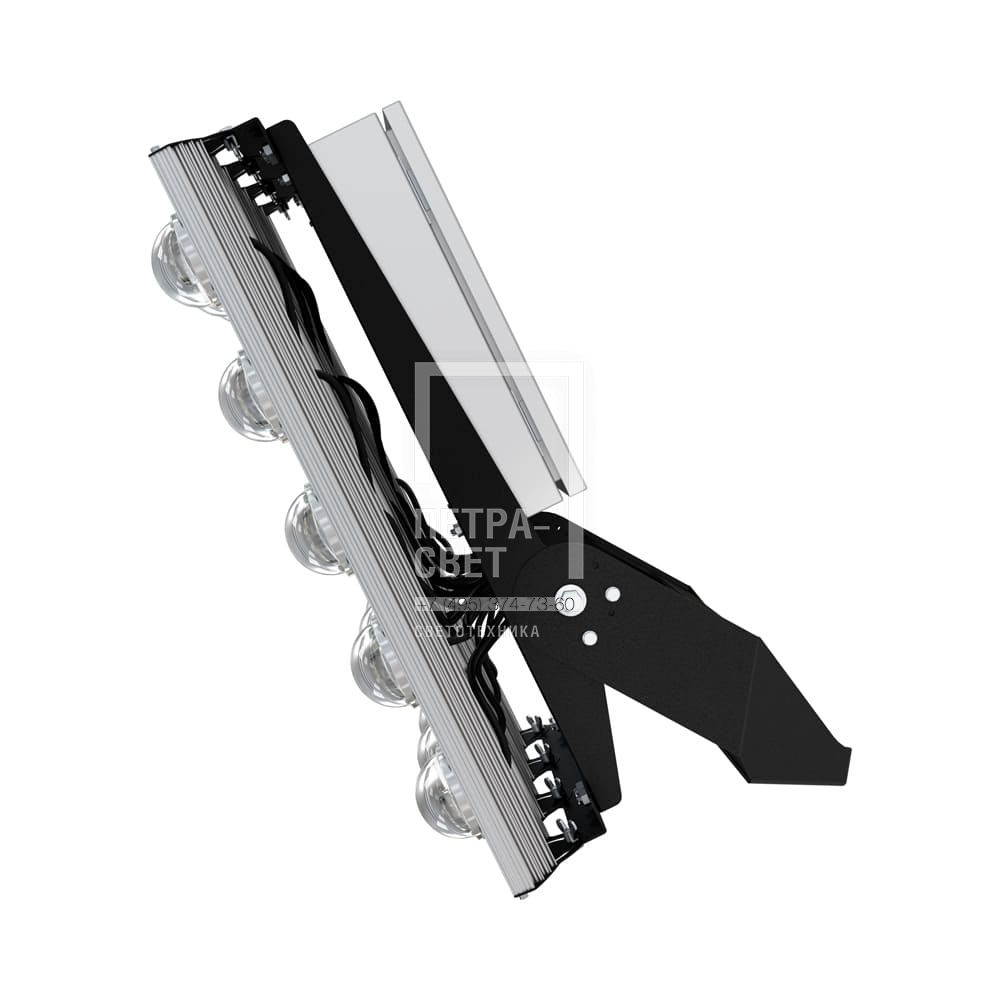 Серия мощных светодиодных прожекторов для освещения: • складов и производственных помещений, • спортивных объектов, • портов и подобных больших территорий, • открытых парковок. Ключевые особенности светильников: • боросиликатная линза, которая не мутнеет, не желтеет и не царапается, • наличие отдельного пылевлагозащищенного монтажного шкафа, где размещаются источники питания. Диапазон мощностей – 300-1500 Вт. Серия «Плазма v2.0» – родоначальница линейки мощных светодиодных прожекторов PromLED: она надёжна и проверена временем (производится с 2017 года). [Светодиодный модуль] Светодиодная плата изготовлена по технологии COB. [Источник питания] Источник питания в металлическом корпусе залит теплопроводящим компаундом, что снижает температуру на его элементах и увеличивает срок службы источника. Источники питания размещаются в специальном монтажном шкафу, который крепится на корпус светильника. За счёт наружного исполнения источника снижается нагрев светодиодного модуля, и сам светильник служит дольше. Также источник питания защищён от микросекундных импульсов высокой энергии до 6 кВ, что позволит сохранить работоспособность светильника даже при появлении в сети посторонних помех. [Линза] Линза из боросиликатного стекла, которая не мутнеет, не желтеет и не царапается. Варианты оптики: 45, 60, 90 и 120 градусов. [Корпус] Экструдированный корпус из анодированного алюминия имеет большую площадь поверхности, что обеспечивает эффективное теплоотведение от светодиодов. [Кронштейн] Светильник комплектуется поворотным кронштейном, позволяющим регулировать угол наклона прожектора.