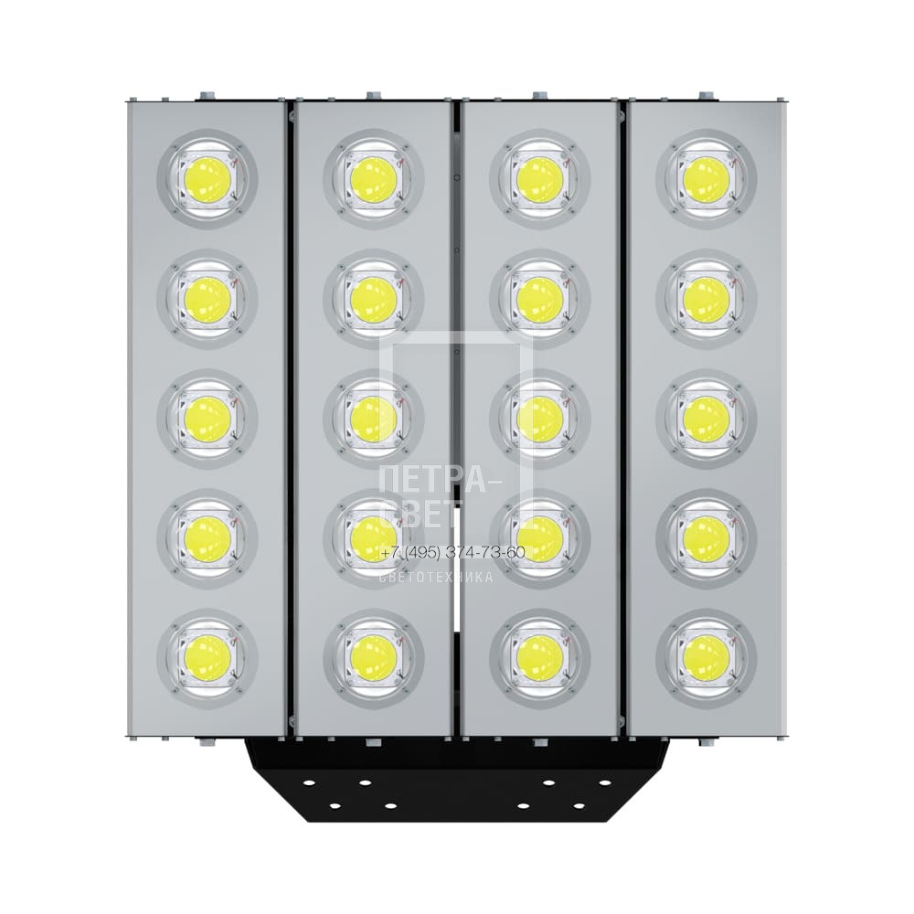 Серия мощных светодиодных прожекторов для освещения: • складов и производственных помещений, • спортивных объектов, • портов и подобных больших территорий, • открытых парковок. Ключевые особенности светильников: • боросиликатная линза, которая не мутнеет, не желтеет и не царапается, • наличие отдельного пылевлагозащищенного монтажного шкафа, где размещаются источники питания. Диапазон мощностей – 300-1500 Вт. Серия «Плазма v2.0» – родоначальница линейки мощных светодиодных прожекторов PromLED: она надёжна и проверена временем (производится с 2017 года). [Светодиодный модуль] Светодиодная плата изготовлена по технологии COB. [Источник питания] Источник питания в металлическом корпусе залит теплопроводящим компаундом, что снижает температуру на его элементах и увеличивает срок службы источника. Источники питания размещаются в специальном монтажном шкафу, который крепится на корпус светильника. За счёт наружного исполнения источника снижается нагрев светодиодного модуля, и сам светильник служит дольше. Также источник питания защищён от микросекундных импульсов высокой энергии до 6 кВ, что позволит сохранить работоспособность светильника даже при появлении в сети посторонних помех. [Линза] Линза из боросиликатного стекла, которая не мутнеет, не желтеет и не царапается. Варианты оптики: 45, 60, 90 и 120 градусов. [Корпус] Экструдированный корпус из анодированного алюминия имеет большую площадь поверхности, что обеспечивает эффективное теплоотведение от светодиодов. [Кронштейн] Светильник комплектуется поворотным кронштейном, позволяющим регулировать угол наклона прожектора.