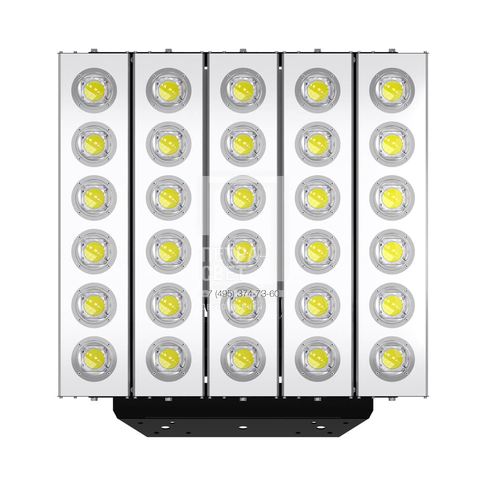 Серия мощных светодиодных прожекторов для освещения: • складов и производственных помещений, • спортивных объектов, • портов и подобных больших территорий, • открытых парковок. Ключевые особенности светильников: • боросиликатная линза, которая не мутнеет, не желтеет и не царапается, • наличие отдельного пылевлагозащищенного монтажного шкафа, где размещаются источники питания. Диапазон мощностей – 300-1500 Вт. Серия «Плазма v2.0» – родоначальница линейки мощных светодиодных прожекторов PromLED: она надёжна и проверена временем (производится с 2017 года). [Светодиодный модуль] Светодиодная плата изготовлена по технологии COB. [Источник питания] Источник питания в металлическом корпусе залит теплопроводящим компаундом, что снижает температуру на его элементах и увеличивает срок службы источника. Источники питания размещаются в специальном монтажном шкафу, который крепится на корпус светильника. За счёт наружного исполнения источника снижается нагрев светодиодного модуля, и сам светильник служит дольше. Также источник питания защищён от микросекундных импульсов высокой энергии до 6 кВ, что позволит сохранить работоспособность светильника даже при появлении в сети посторонних помех. [Линза] Линза из боросиликатного стекла, которая не мутнеет, не желтеет и не царапается. Варианты оптики: 45, 60, 90 и 120 градусов. [Корпус] Экструдированный корпус из анодированного алюминия имеет большую площадь поверхности, что обеспечивает эффективное теплоотведение от светодиодов. [Кронштейн] Светильник комплектуется поворотным кронштейном, позволяющим регулировать угол наклона прожектора.