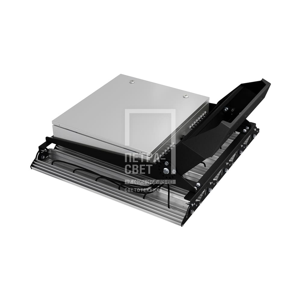 Серия мощных светодиодных прожекторов для освещения: • складов и производственных помещений, • спортивных объектов, • портов и подобных больших территорий, • открытых парковок. Ключевые особенности светильников: • боросиликатная линза, которая не мутнеет, не желтеет и не царапается, • наличие отдельного пылевлагозащищенного монтажного шкафа, где размещаются источники питания. Диапазон мощностей – 300-1500 Вт. Серия «Плазма v2.0» – родоначальница линейки мощных светодиодных прожекторов PromLED: она надёжна и проверена временем (производится с 2017 года). [Светодиодный модуль] Светодиодная плата изготовлена по технологии COB. [Источник питания] Источник питания в металлическом корпусе залит теплопроводящим компаундом, что снижает температуру на его элементах и увеличивает срок службы источника. Источники питания размещаются в специальном монтажном шкафу, который крепится на корпус светильника. За счёт наружного исполнения источника снижается нагрев светодиодного модуля, и сам светильник служит дольше. Также источник питания защищён от микросекундных импульсов высокой энергии до 6 кВ, что позволит сохранить работоспособность светильника даже при появлении в сети посторонних помех. [Линза] Линза из боросиликатного стекла, которая не мутнеет, не желтеет и не царапается. Варианты оптики: 45, 60, 90 и 120 градусов. [Корпус] Экструдированный корпус из анодированного алюминия имеет большую площадь поверхности, что обеспечивает эффективное теплоотведение от светодиодов. [Кронштейн] Светильник комплектуется поворотным кронштейном, позволяющим регулировать угол наклона прожектора.
