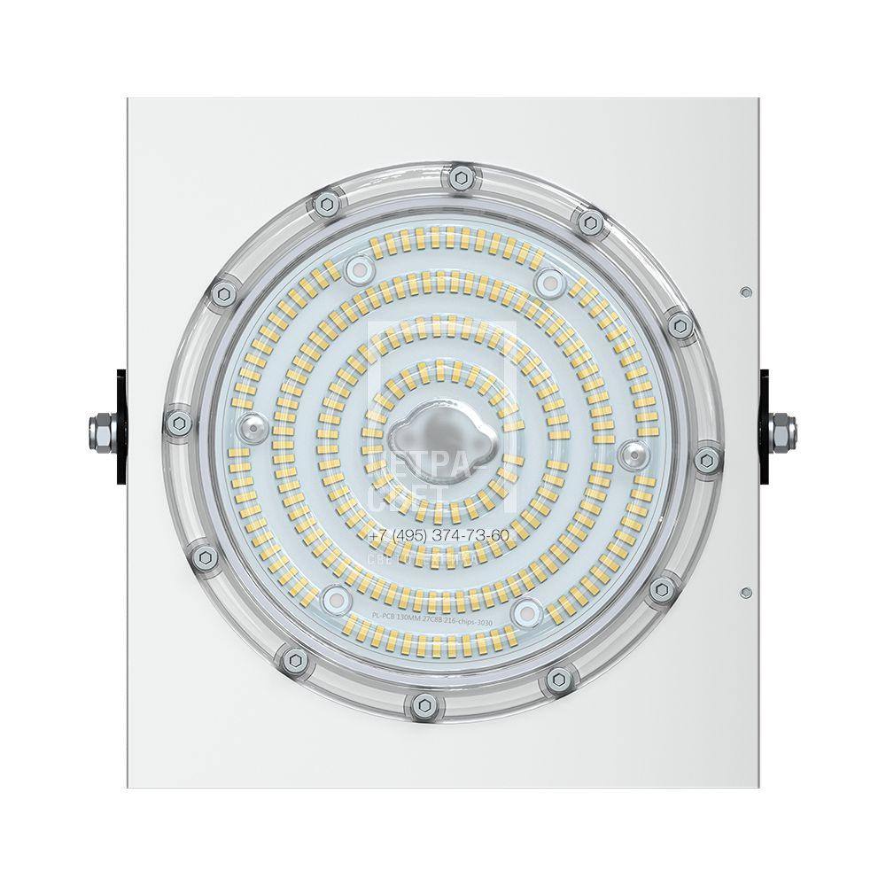 Серия промышленных светодиодных прожекторов для освещения: • спортивных площадок, бассейнов, теннисных кортов; • площадей, открытых парковок; • складов, • производственных помещений. Прожекторы малых мощностей могут использоваться в том числе и в архитектурном освещении. Серия «Прожектор D» – это светильники с высокой энергоэффективностью (до 185 лм/Вт) и круглыми линзами. Прожекторы имеют оптимальное соотношение эффективности и цены за люмен, а широкий мощностной ряд позволяет решать самые разные светотехнические задачи. [Корпус] Экструдированный корпус из анодированного алюминия имеет большую площадь поверхности, что обеспечивает эффективное теплоотведение от светодиодов. [Светодиодный модуль] Светодиодный модуль содержит значительное количество диодов, равномерно распределённых по большой площади. За счёт этого снижается габаритная яркость и обеспечивается комфортное неслепящее освещение. Светодиоды работают при низких токах (50% от номинальных и ниже), что повышает эффективность светильника и увеличивает срок его службы. [Линза] Линза изготовлена из УФ-стабилизированного поликарбоната, который не мутнеет, не желтеет и не трескается при эксплуатации на улице. [Источник питания] Источник питания наружного исполнения, его металлический корпус залит теплопроводящим компаундом. За счёт этого снижается нагрев светодиодного модуля и самого источника питания, поэтому светильник служит дольше. Также источник питания защищён от микросекундных импульсов высокой энергии. Это позволяет сохранять работоспособность светильника даже при появлении в сети посторонних помех. [Крепление] В комплекте идёт кронштейн, который позволяет регулировать угол наклона светильников. Специальные зубцы на кронштейнах (для светильников 200-300 Вт) дополнительно облегчают регулировку положения прожектора.