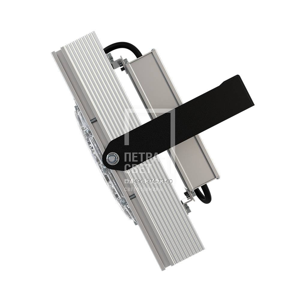Серия промышленных светодиодных прожекторов для освещения: • спортивных площадок, бассейнов, теннисных кортов; • площадей, открытых парковок; • складов, • производственных помещений. Прожекторы малых мощностей могут использоваться в том числе и в архитектурном освещении. Серия «Прожектор D» – это светильники с высокой энергоэффективностью (до 185 лм/Вт) и круглыми линзами. Прожекторы имеют оптимальное соотношение эффективности и цены за люмен, а широкий мощностной ряд позволяет решать самые разные светотехнические задачи. [Корпус] Экструдированный корпус из анодированного алюминия имеет большую площадь поверхности, что обеспечивает эффективное теплоотведение от светодиодов. [Светодиодный модуль] Светодиодный модуль содержит значительное количество диодов, равномерно распределённых по большой площади. За счёт этого снижается габаритная яркость и обеспечивается комфортное неслепящее освещение. Светодиоды работают при низких токах (50% от номинальных и ниже), что повышает эффективность светильника и увеличивает срок его службы. [Линза] Линза изготовлена из УФ-стабилизированного поликарбоната, который не мутнеет, не желтеет и не трескается при эксплуатации на улице. [Источник питания] Источник питания наружного исполнения, его металлический корпус залит теплопроводящим компаундом. За счёт этого снижается нагрев светодиодного модуля и самого источника питания, поэтому светильник служит дольше. Также источник питания защищён от микросекундных импульсов высокой энергии. Это позволяет сохранять работоспособность светильника даже при появлении в сети посторонних помех. [Крепление] В комплекте идёт кронштейн, который позволяет регулировать угол наклона светильников. Специальные зубцы на кронштейнах (для светильников 200-300 Вт) дополнительно облегчают регулировку положения прожектора.