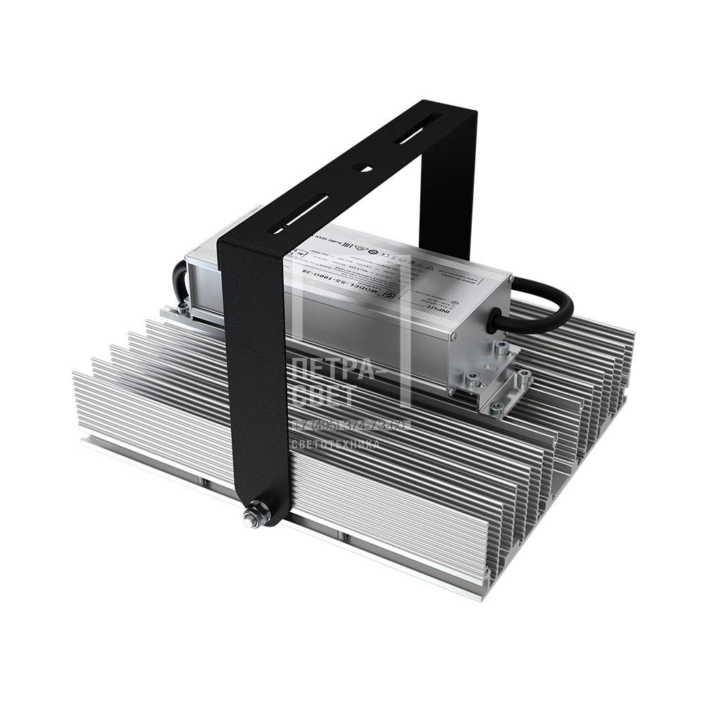 Серия промышленных светодиодных прожекторов для освещения: • спортивных площадок, бассейнов, теннисных кортов; • площадей, открытых парковок; • складов, • производственных помещений. Прожекторы малых мощностей могут использоваться в том числе и в архитектурном освещении. Серия «Прожектор D» – это светильники с высокой энергоэффективностью (до 185 лм/Вт) и круглыми линзами. Прожекторы имеют оптимальное соотношение эффективности и цены за люмен, а широкий мощностной ряд позволяет решать самые разные светотехнические задачи. [Корпус] Экструдированный корпус из анодированного алюминия имеет большую площадь поверхности, что обеспечивает эффективное теплоотведение от светодиодов. [Светодиодный модуль] Светодиодный модуль содержит значительное количество диодов, равномерно распределённых по большой площади. За счёт этого снижается габаритная яркость и обеспечивается комфортное неслепящее освещение. Светодиоды работают при низких токах (50% от номинальных и ниже), что повышает эффективность светильника и увеличивает срок его службы. [Линза] Линза изготовлена из УФ-стабилизированного поликарбоната, который не мутнеет, не желтеет и не трескается при эксплуатации на улице. [Источник питания] Источник питания наружного исполнения, его металлический корпус залит теплопроводящим компаундом. За счёт этого снижается нагрев светодиодного модуля и самого источника питания, поэтому светильник служит дольше. Также источник питания защищён от микросекундных импульсов высокой энергии. Это позволяет сохранять работоспособность светильника даже при появлении в сети посторонних помех. [Крепление] В комплекте идёт кронштейн, который позволяет регулировать угол наклона светильников. Специальные зубцы на кронштейнах (для светильников 200-300 Вт) дополнительно облегчают регулировку положения прожектора.