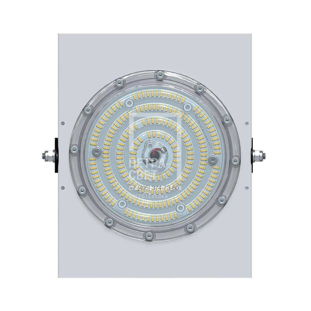Серия промышленных светодиодных прожекторов для освещения: • спортивных площадок, бассейнов, теннисных кортов; • площадей, открытых парковок; • складов, • производственных помещений. Прожекторы малых мощностей могут использоваться в том числе и в архитектурном освещении. Серия «Прожектор D» – это светильники с высокой энергоэффективностью (до 185 лм/Вт) и круглыми линзами. Прожекторы имеют оптимальное соотношение эффективности и цены за люмен, а широкий мощностной ряд позволяет решать самые разные светотехнические задачи. [Корпус] Экструдированный корпус из анодированного алюминия имеет большую площадь поверхности, что обеспечивает эффективное теплоотведение от светодиодов. [Светодиодный модуль] Светодиодный модуль содержит значительное количество диодов, равномерно распределённых по большой площади. За счёт этого снижается габаритная яркость и обеспечивается комфортное неслепящее освещение. Светодиоды работают при низких токах (50% от номинальных и ниже), что повышает эффективность светильника и увеличивает срок его службы. [Линза] Линза изготовлена из УФ-стабилизированного поликарбоната, который не мутнеет, не желтеет и не трескается при эксплуатации на улице. [Источник питания] Источник питания наружного исполнения, его металлический корпус залит теплопроводящим компаундом. За счёт этого снижается нагрев светодиодного модуля и самого источника питания, поэтому светильник служит дольше. Также источник питания защищён от микросекундных импульсов высокой энергии. Это позволяет сохранять работоспособность светильника даже при появлении в сети посторонних помех. [Крепление] В комплекте идёт кронштейн, который позволяет регулировать угол наклона светильников. Специальные зубцы на кронштейнах (для светильников 200-300 Вт) дополнительно облегчают регулировку положения прожектора.